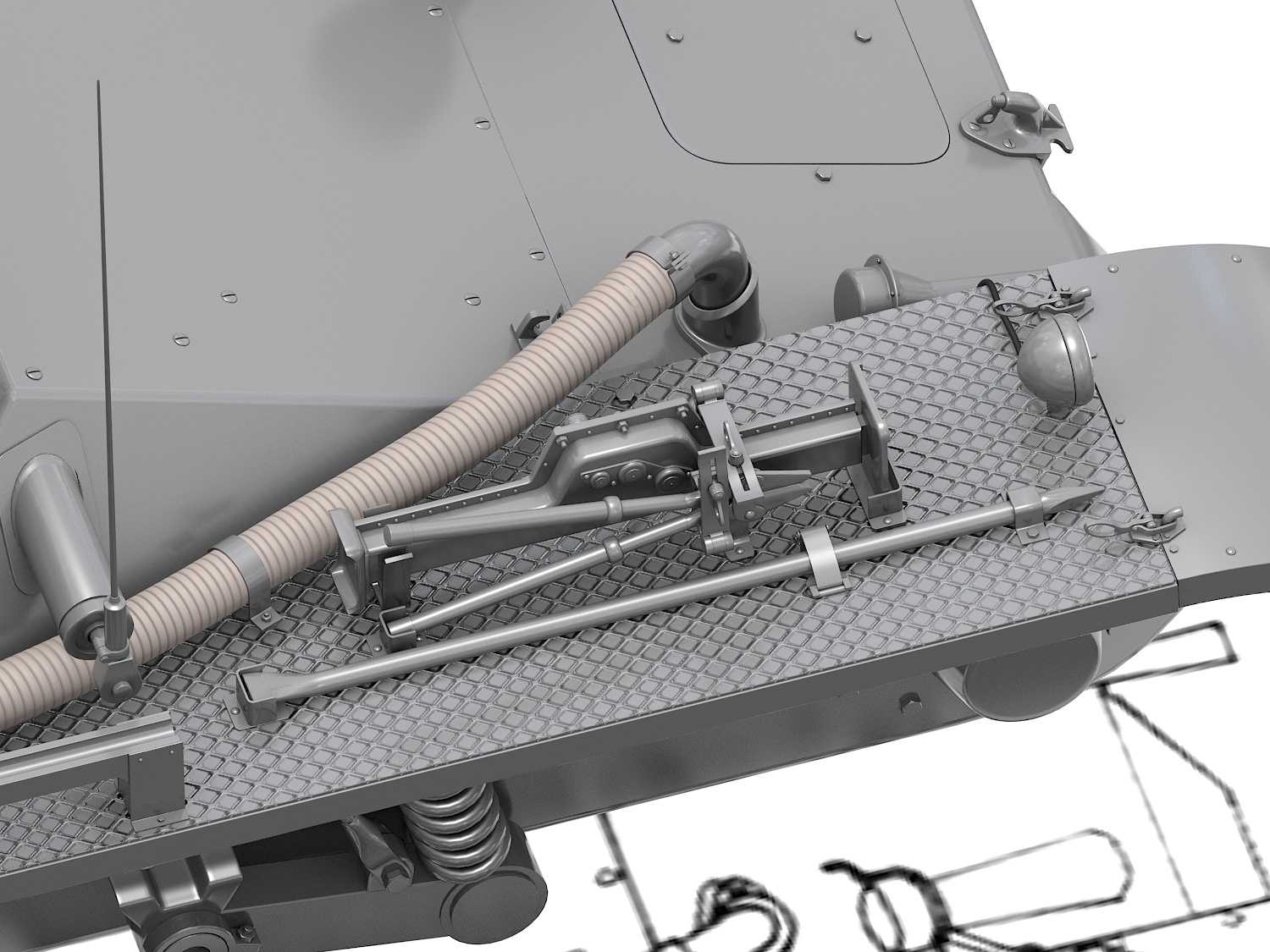 Pues exactamente en la misma disposición de un Panzer IV, de hecho, es el mismo puesto de copiloto y piloto. Que no te engañe el tamaño, que es lo que lleva a engaño. Las ruedas tienen 2,7 m de diámetro, tenía un motor para cada rueda y la dirección la hacía mediante dos cilindros, que torcía a la segunda unidad y giraba en el sentido deseado. Pesaba unas 130 Tn y no corría mucho, pues esa era su misión, reventar todas las minas posibles y abrir paso en los campos minados para él resto. Lo capturaron los americanos (sólo un prototipo) y nadie ha vuelto a saber nada de él.