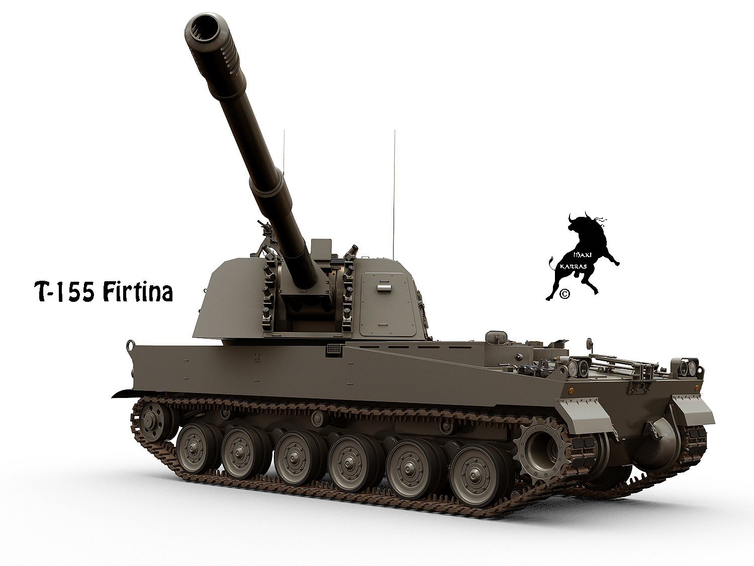 Uno rápido. El turco T-155 Firtina, un ATP turco, pero con todo coreano, bueno la torreta de diseño turco con un aire a la del Pzh, pero con casi todas las tapas del K-9 thunder, el chasis de hecho, es el del K-9 con muy, muy pocos cambios.