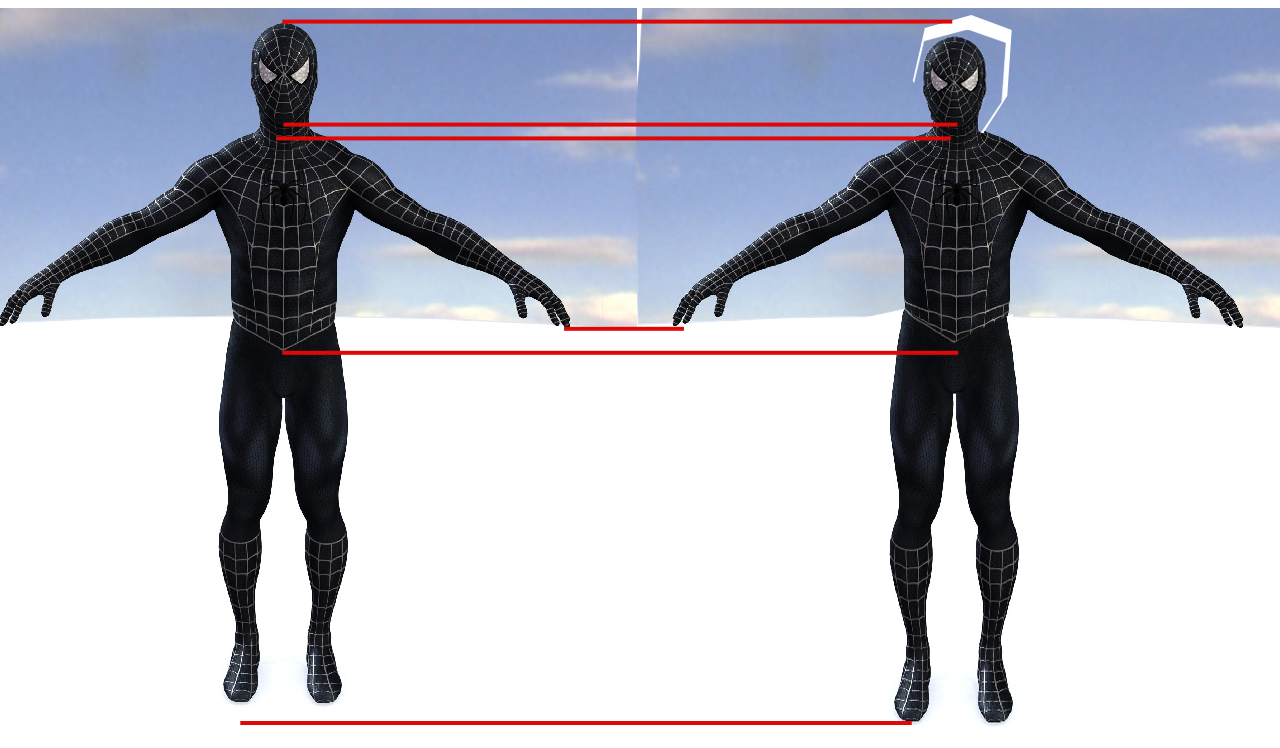 Mientras sigo remodelando, aunque ya di por concluido el trabajo 20 veces, pero tampoco hay prisa. Le estoy dando una estética intermedia entre la película, y el del cómic. Ni tan fibroso ni tan real como el tobey mcguire que es un tapón. Mas o menos me empieza a gustar, pero sigo viéndolo raro en algunas zonas. Así que ha seguir mirando referencias anatomía.