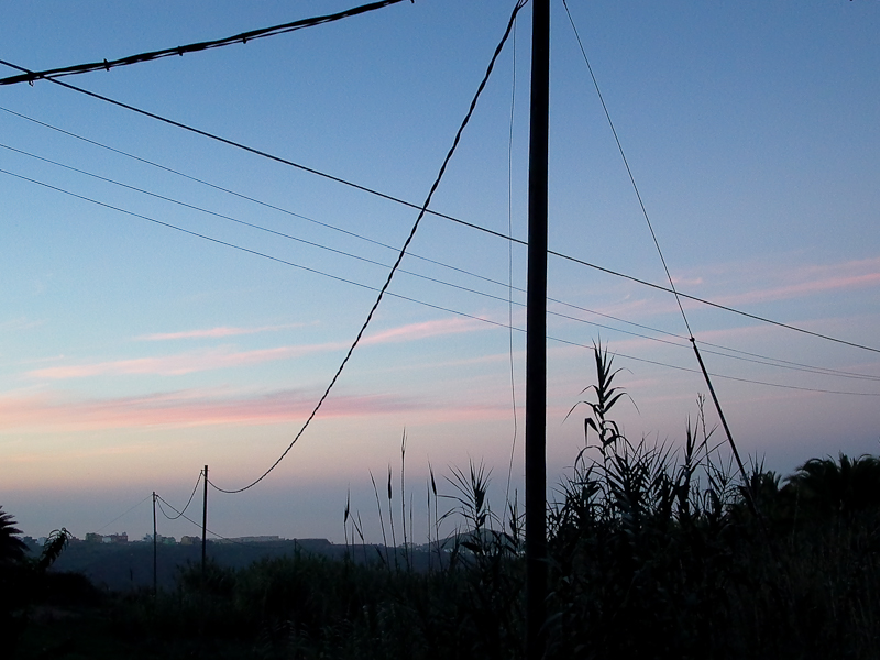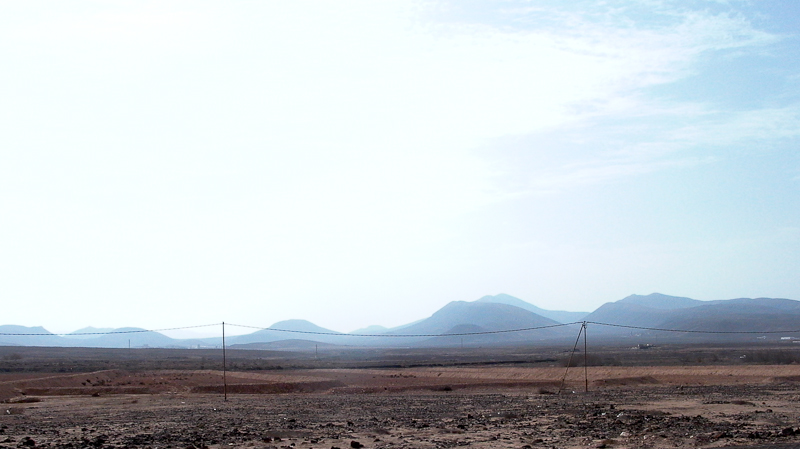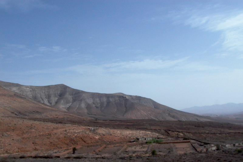 Las montañas. Con sus lomos suaves. Entre la calima.