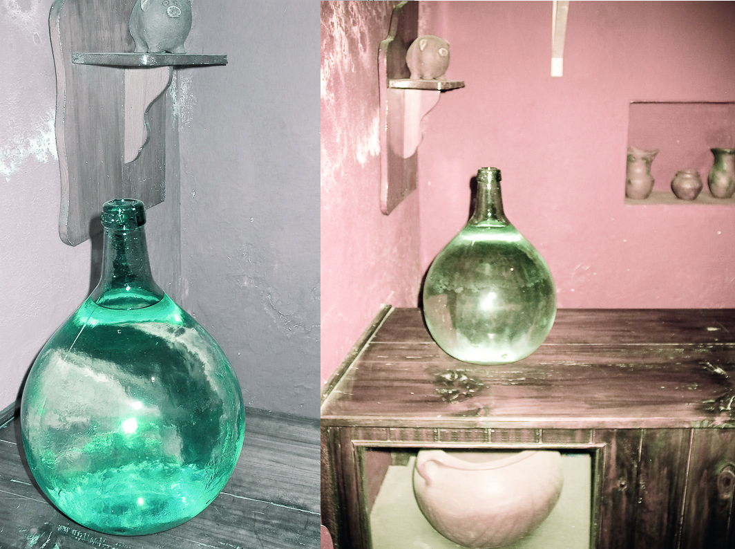 Las flores del rabo largo son para pasarlas a metal y hacer anillos. Seran los primeros, a ver qué tal. La damajuana desde otro ángulo.