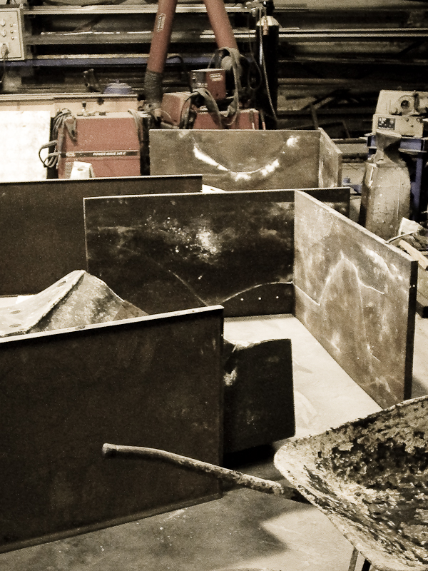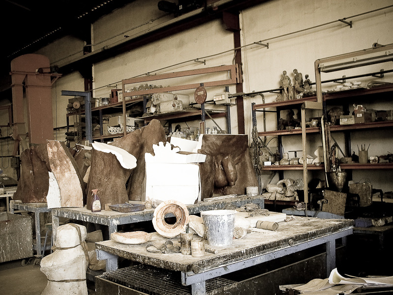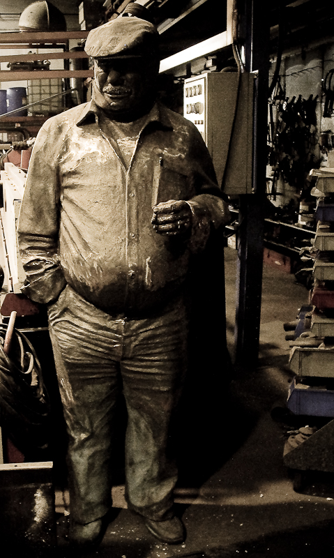 Visita al taller de fundición donde se realizaba el tritón. Ya está instalado en la playa de la laja, entre otras cosas.