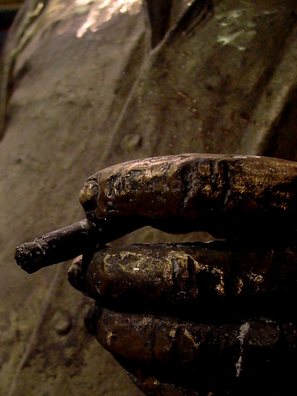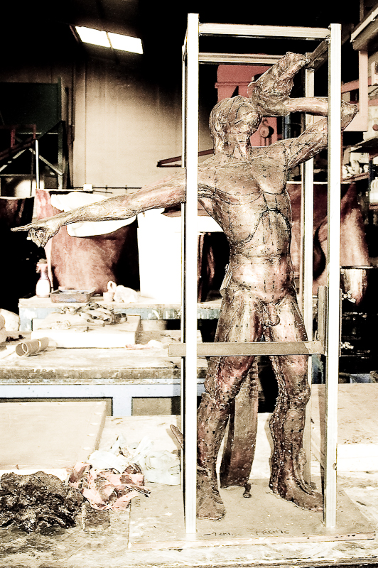 Es una escultura en bronce. Ya acabada, de un artista cubano. Preguntaré el nombre. Me hizo pensar en el gusto de los artistas latinos por lo viejo, lo usado.