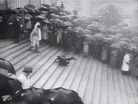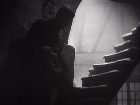 este maestro de la escalera. Y el otro es el protagonista, en una de las pocas escenas de la película donde aún lleva bombín.