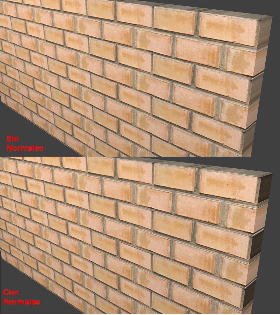 Ahí va un primer intento rápido, sin normales y con normales, no me convence mucho el resultado se ven como demasiado cuadrados con las normales, y tengo que ver por que por los laterales de la pared se ven mal.
