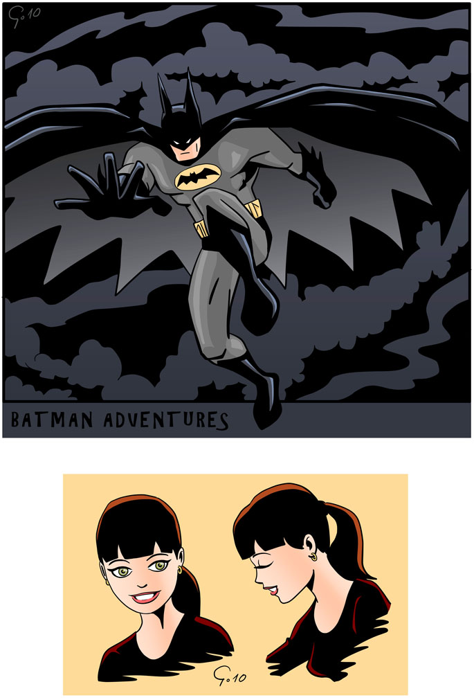 Las profesoras son muy interesantes. Si el de Batman es una prueba, así como el del robot y la cabeza de la chica, quisiera simplificar para que no me cueste tanto tiempo cada dibujo, en fin.