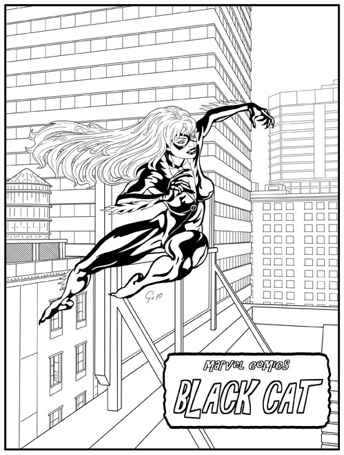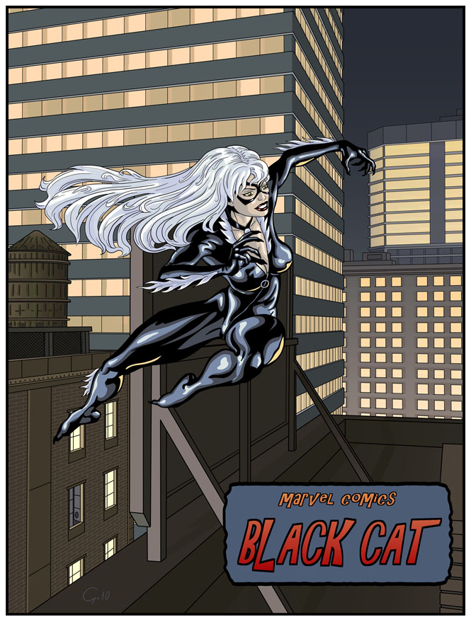 Ilustración + cómic, una ilustración para portada y un pin-up de la gata negra.