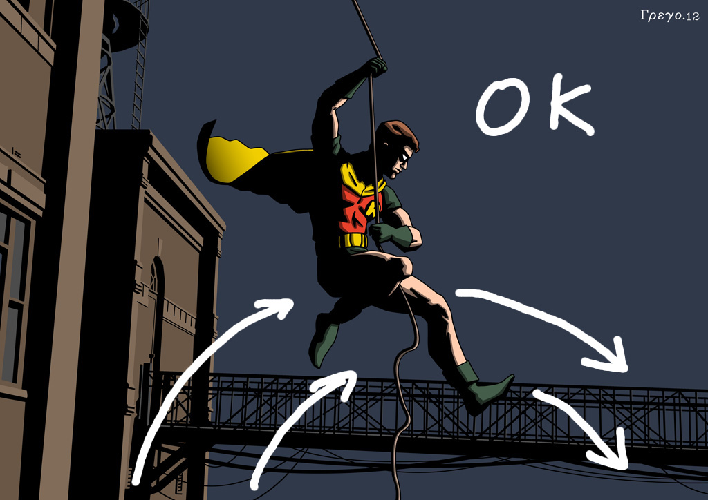 Desde luego sólo es corregir un poco más, vamos a ver, la tensión en la cuerda debe serlo también entre las dos manos, el cuerpo te lo está pidiendo, pesa bastante creo que se podría decir que físicamente no funciona, y otra es la torsión de la mano, al igual que la cuerda tampoco creo que pudiera estar en esa posición la encuentro exageradamente forzada. En cuanto al dinamismo de la imagen esta correcta, en sí me gusta, pero sólo es variar dos cosas.