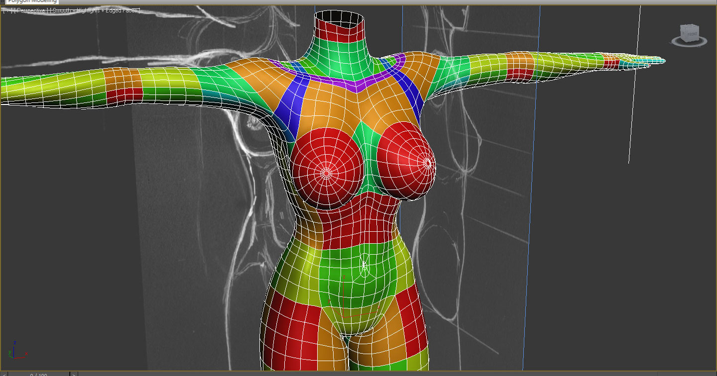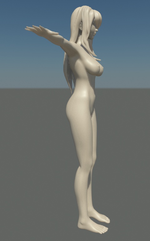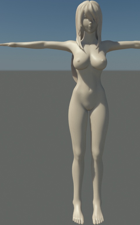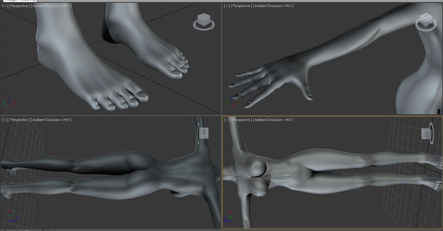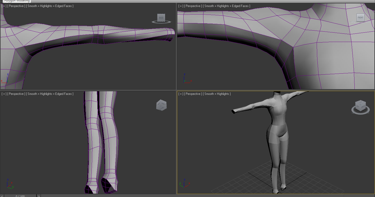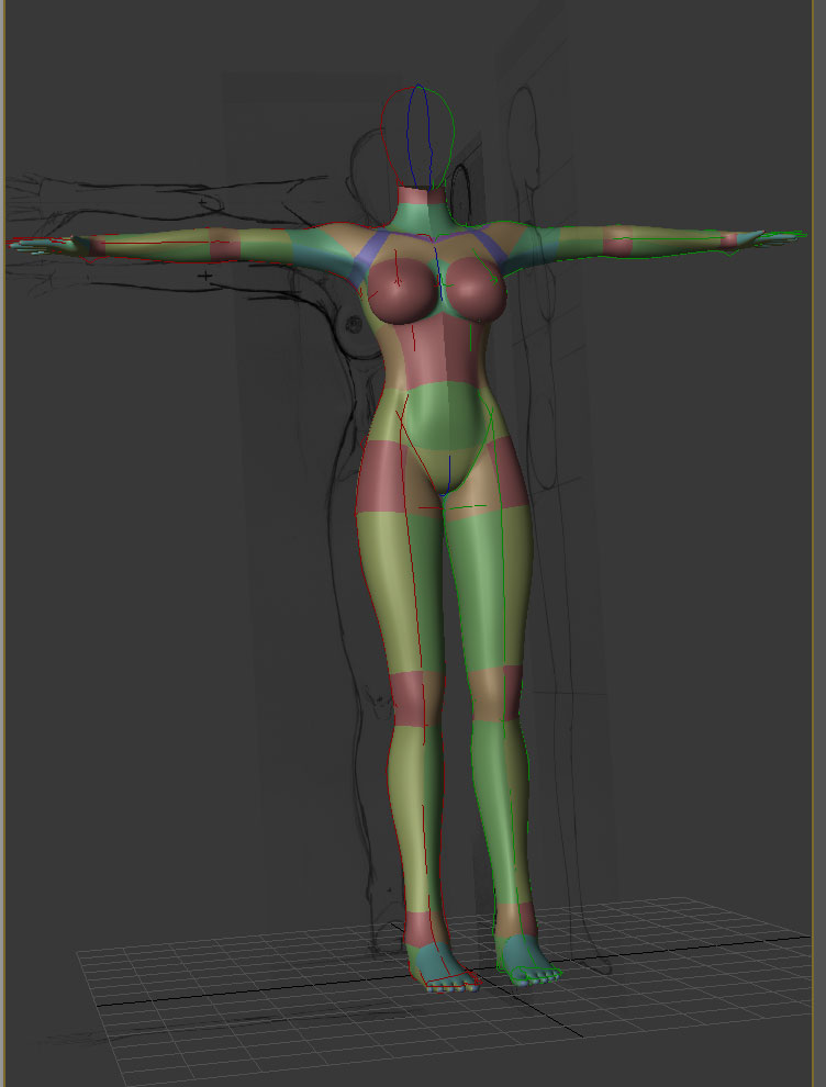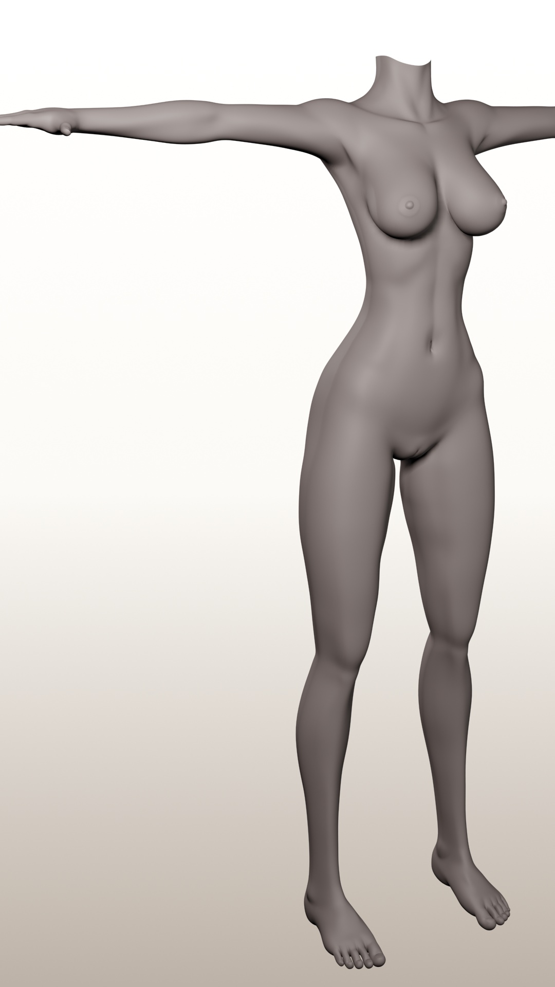 Intentando hacer un cuerpo femenino (aunque de momento de ahí puede salir cualquier cosa, es andrógino) de mínima resolución y de líneas limpias, porque siempre me he hecho un lío en zonas difíciles, donde no me cuadraba el número de polígonos, juntar seis segmentos con una zona donde hay sólo dos, etc.