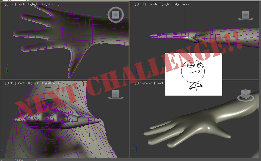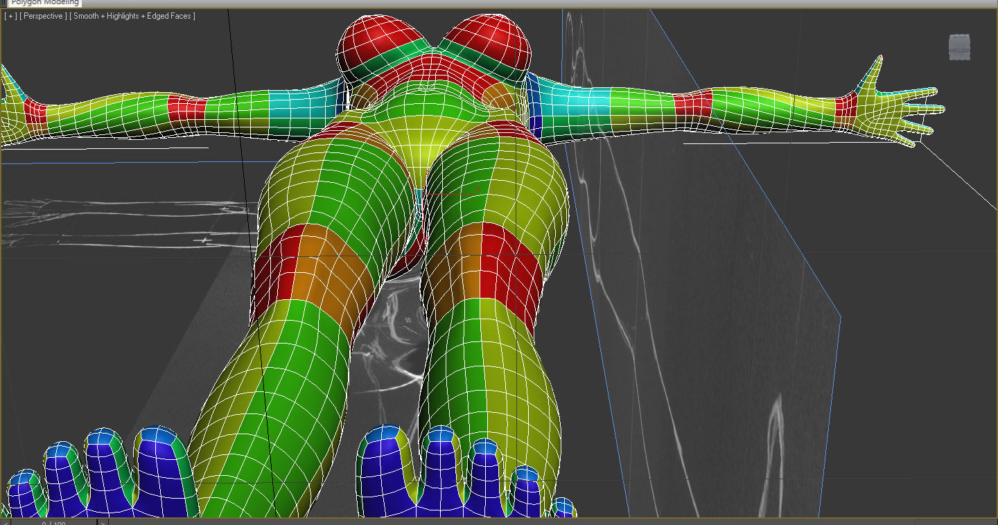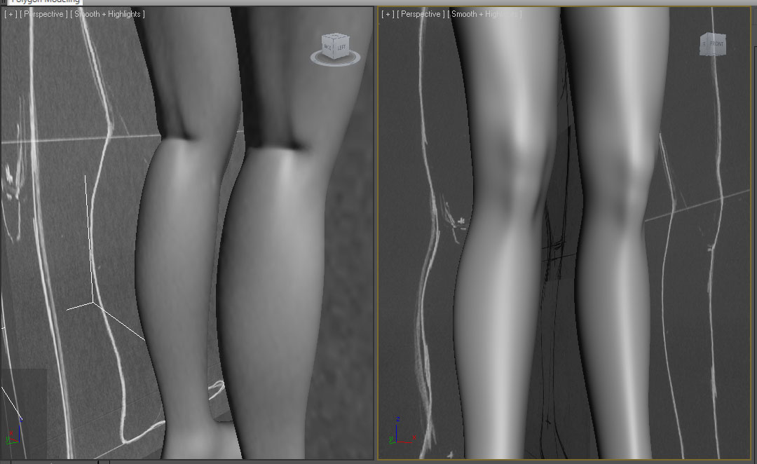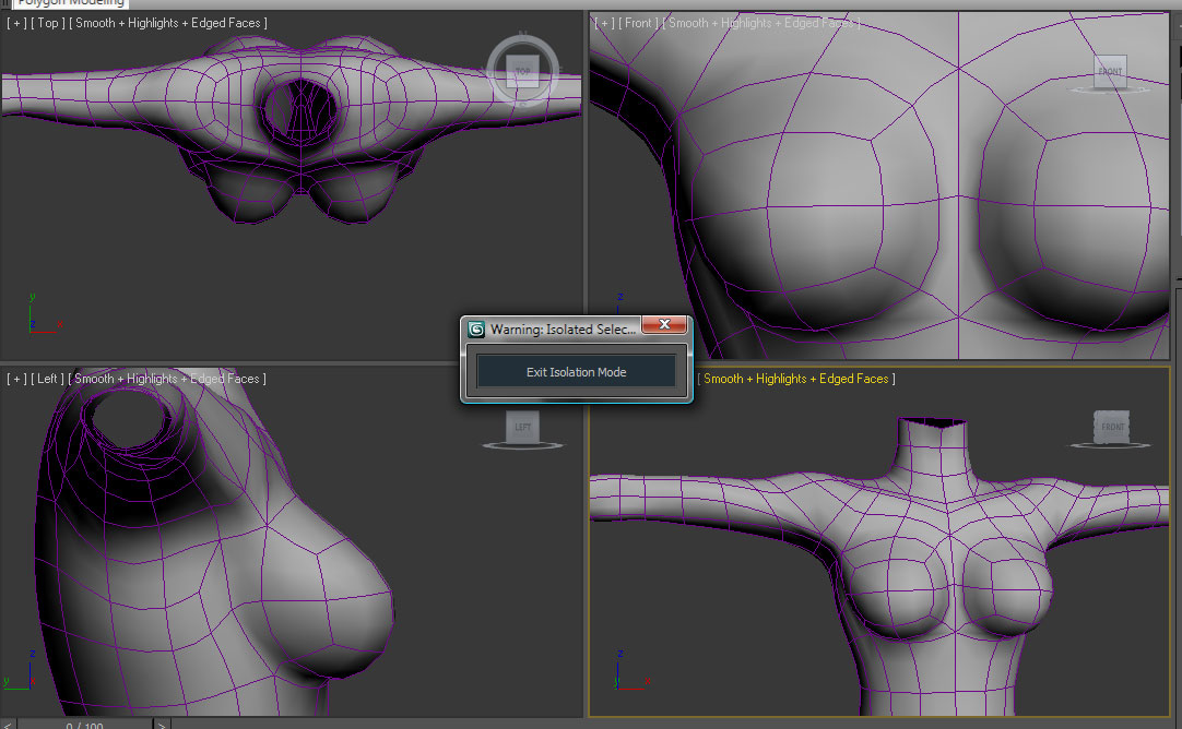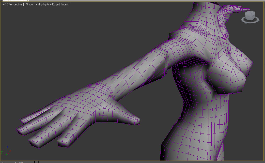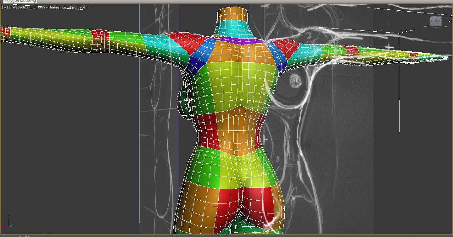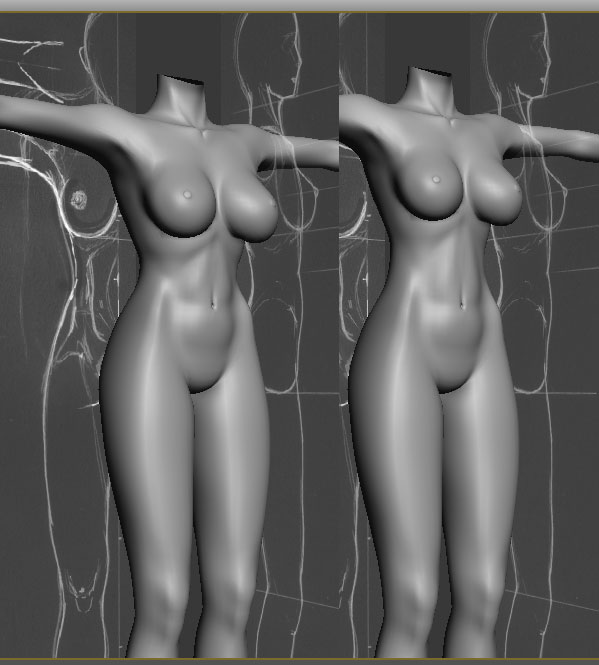 Intentando hacer un cuerpo femenino (aunque de momento de ahí puede salir cualquier cosa, es andrógino) de mínima resolución y de líneas limpias, porque siempre me he hecho un lío en zonas difíciles, donde no me cuadraba el número de polígonos, juntar seis segmentos con una zona donde hay sólo dos, etc.