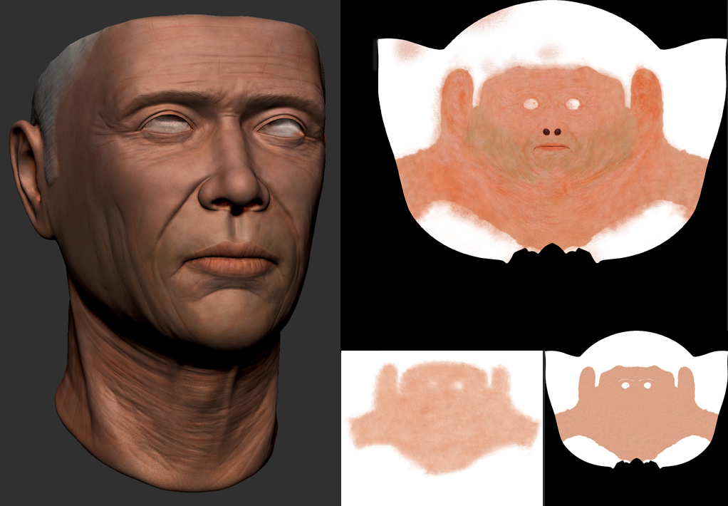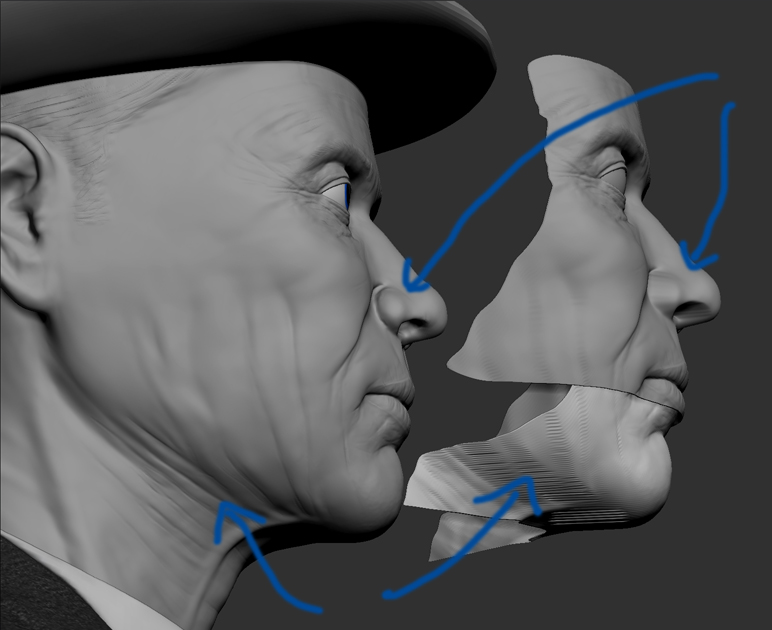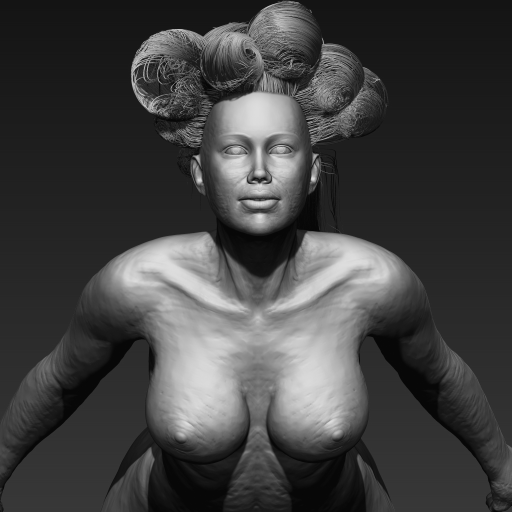 Cagüem el machmaker, paso de esa herramienta, puedo conseguir lo mismo por otros. Caminos. (con extract, ej). Dando TeX, al rostro, uso de técnica mixta: polypaint en vivo que voy combinando tocando.