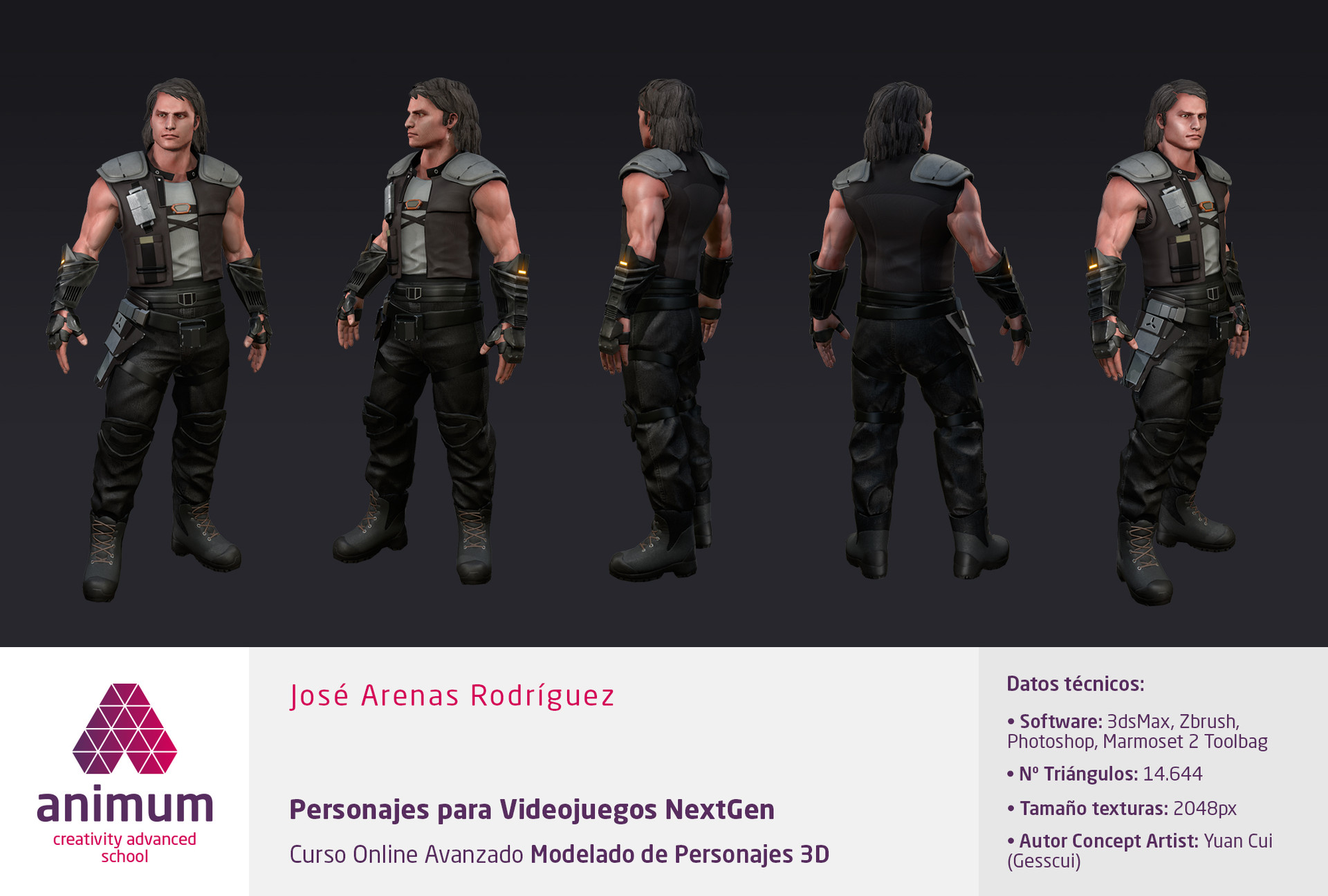 Otro modelo impresionante realizado en el Master de Modelado de Personajes 3D de Animum. En esta ocasión el artista Christian Garrido realizó este modelo de videojuegos.