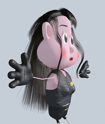 Buena opinión Airbrush gracias, el personaje está listo para ser animado ya cuenta con un esqueleto, clothfx para la tela skin Warpy mopht, cuenta con una forma con menos polígonos para la dinámica del pelo, ya tiene todo ahora estoy haciendo las texturas.