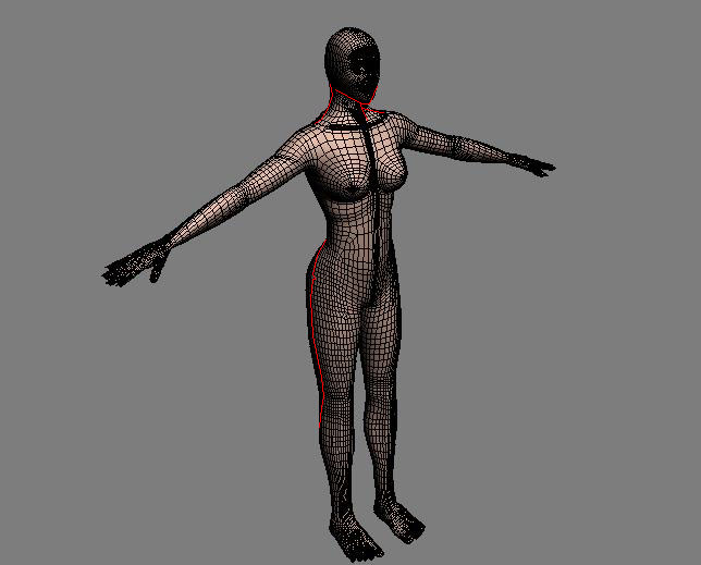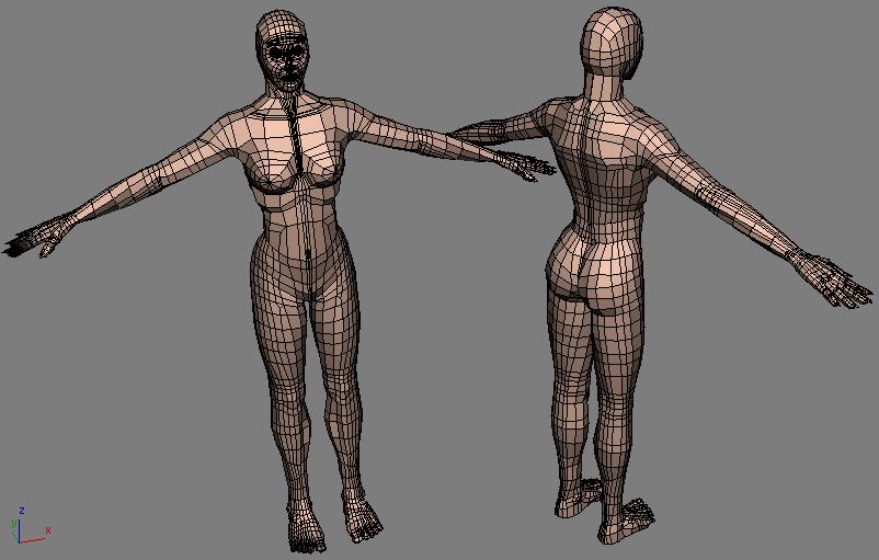En cuanto a la malla, veo demasiado vértices en la zona central, sobre todo entre teta y teta. Saludos.
