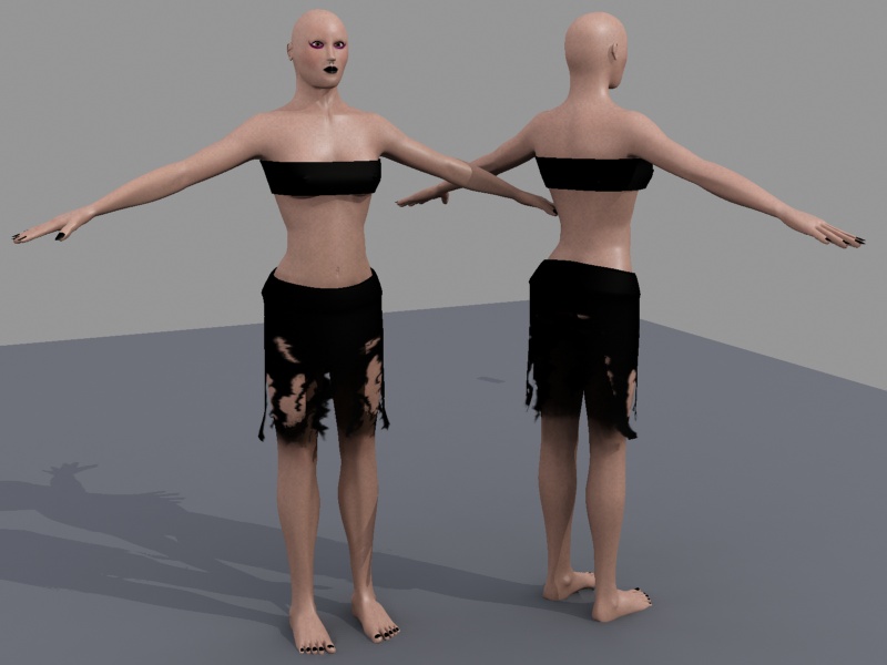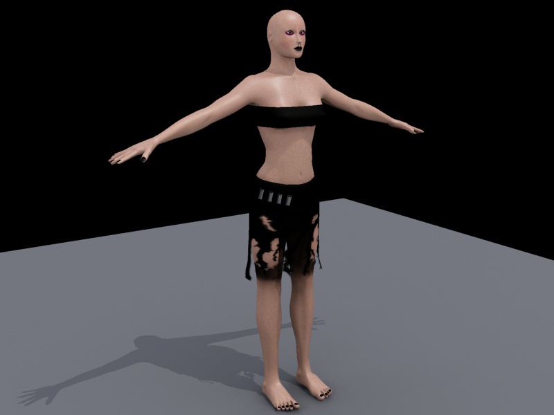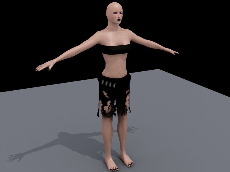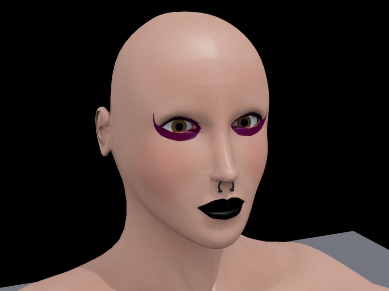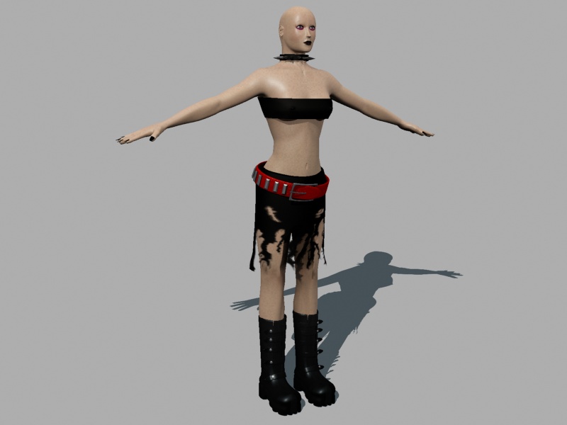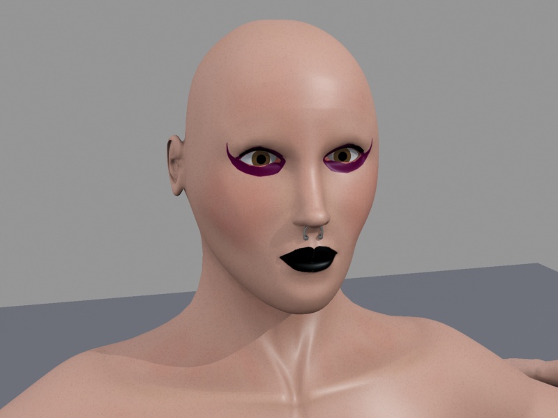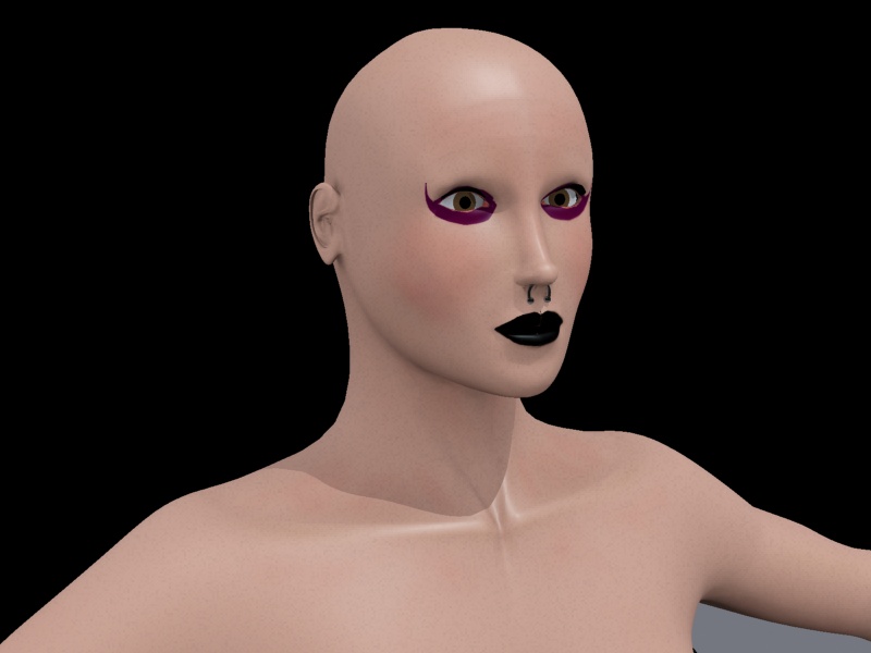 Es una chica de rasgos fuertes emo, solo te parece masculinoide porque está pelada. El modelado lo di por terminado, ahora estoy con lo demás.