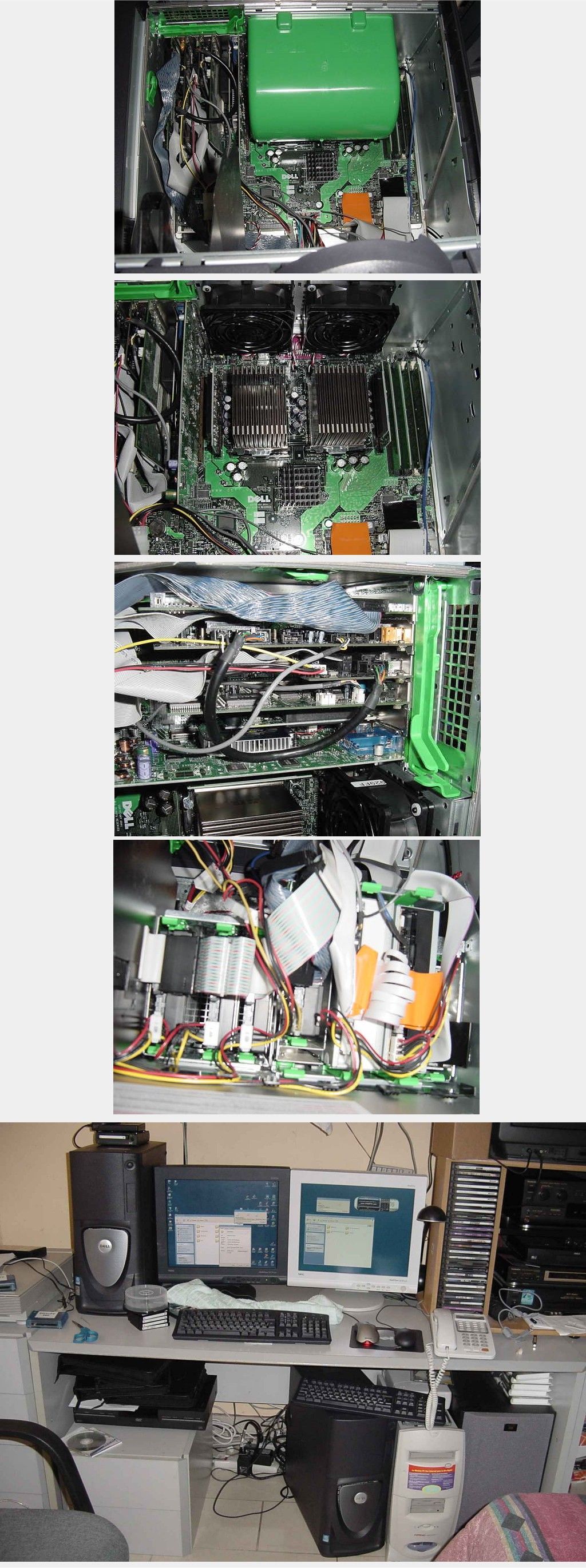 Hola, aquí os dejo unas fotografías de uno de mis equipos. Si os fijáis los disipadores no llevan encima ventilador, no intentéis hacer eso con un AMD, solo hay que ver el interior para darse cuenta que es una máquina de trabajo, por supuesto que hay ordenadores más rápidos y más baratos, pero no me jugaría yo el pellejo. Un saludo.