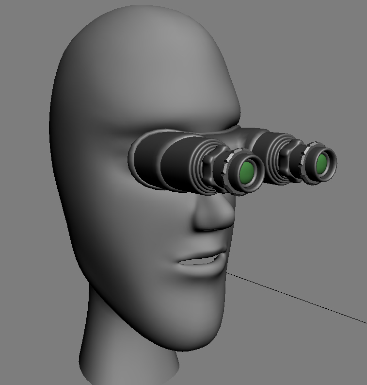 Acabo de empezar la cabeza, y posiblemente antes de seguir con el cuerpo haga el Rig facial y el de las gafas, tendré que buscar instrucciones para manejo de gafas de visión nocturna. Llevara un casco así que, posiblemente no le haga ni las orejas.