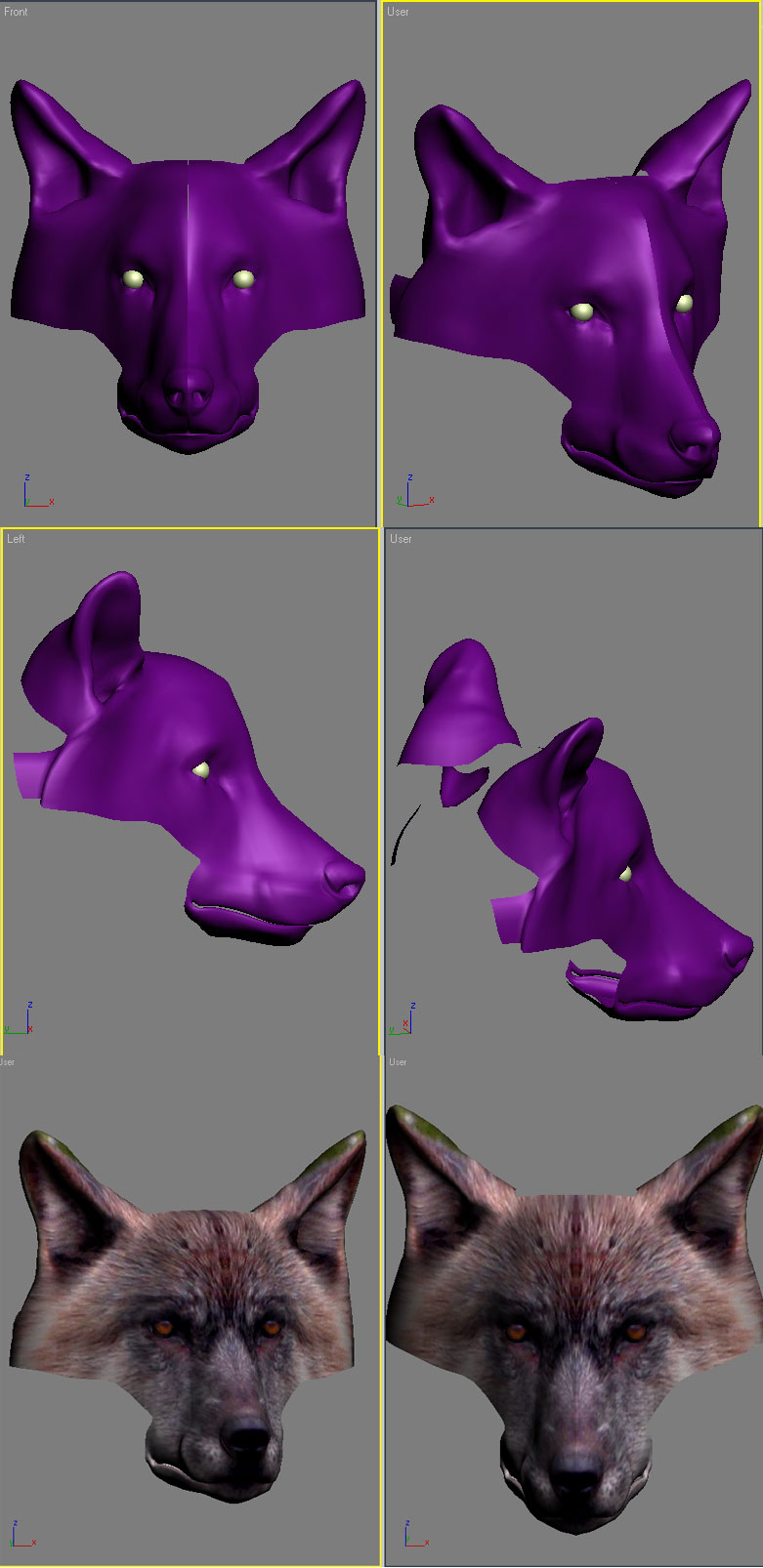 Agradezco cualquier comentario y sugerencia, el modelo pretende ser un lobo sin pretender ser un modelo hiperrealista, por exigencias del proyecto no se puede usar Fur o Hair de max así que, todo el pelo debe ser geometría y así es como lo estoy haciendo, gracias a todos.