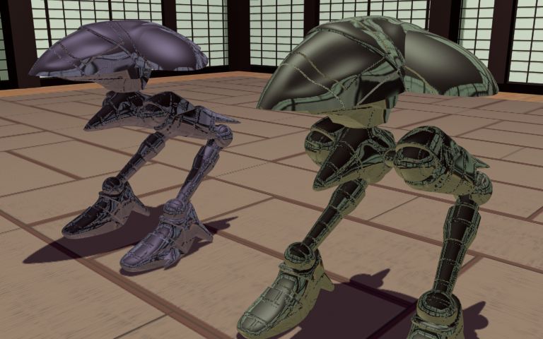 Declaro oficialmente acabadas a mis dos androides lowpoly de 35 centímetros de alto. Además, de morphtargets para que puedan hablar, les he hecho varias skins. Además, de un skin casi sin ropa para poder hacer más.