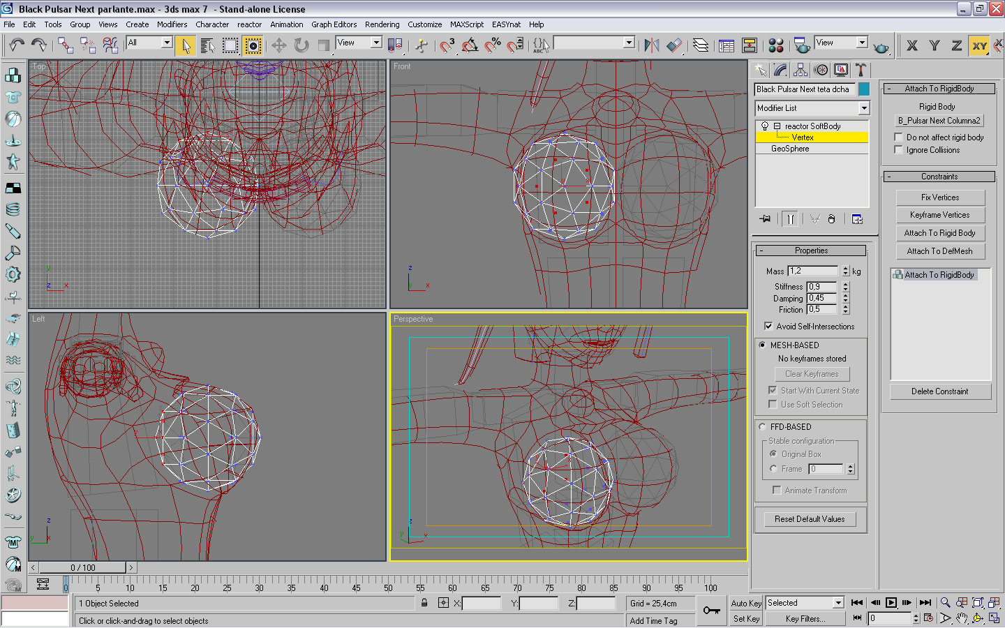 Animación por simulación física de pechos femeninos en 3ds Max 7 usando Reactor.