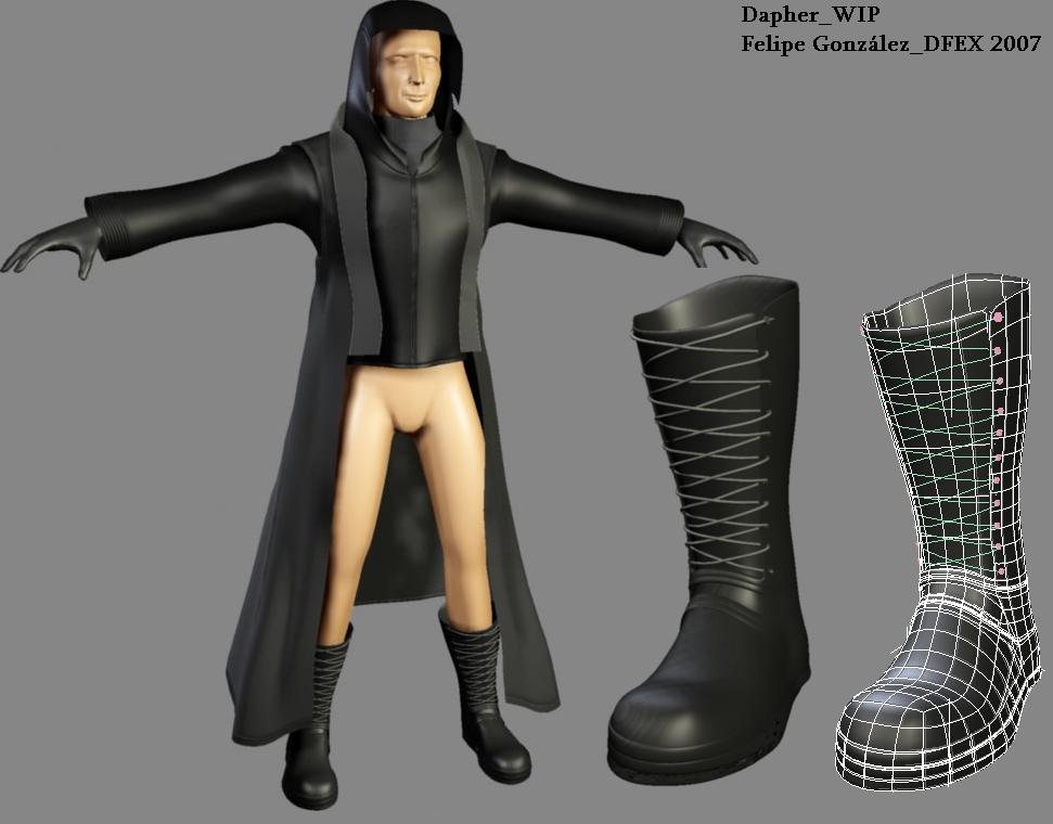 Ese tabique de la nariz está bien? Y si es correcta la proporción es correcto que se dibuje una línea de luz especular tan larga? Hay algo que yo pueda hacer para quebrar esa línea? Porque entra luz en la base de la nariz? Quizás hay formas sutiles allí para generar más oclusión de luz? Si los ojos están bien ubicados es normal que reciban tanta luz? Es posible que deba desplazar toda esa zona un poco hacia adentro? Está bien que la forma que dibuja la capucha sea tan cuadrada? Debería adaptarse más a la forma del cráneo en algunas zonasí, los cordones(correasí) de las botas están ajustados o sueltos? Y si están ajustados hice los laterales muy abiertos?