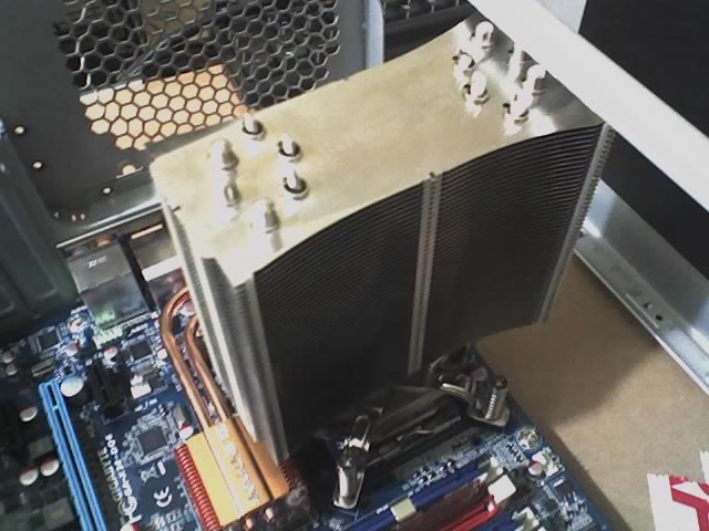 ¿tu crees? Me parece más incómodo (aun) montar el disipador dentro de la caja. Ten en cuenta que el Thermalright es bastante aparatoso. Tiene el tamaño de un paquete de 10 CD en caja Slim (+ el ventilador) y pesa casi un kilo. Veo más sencillo hacerlo fuera. De hecho, he montado primero la fuente de alimentación porque me he dado cuenta de que luego con el thermaright montado dentro no podría meterla en la caja.