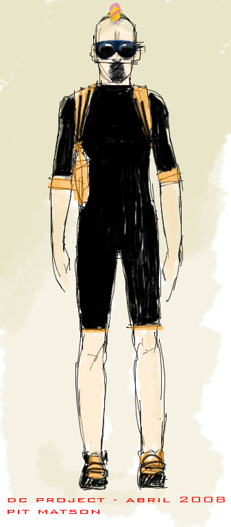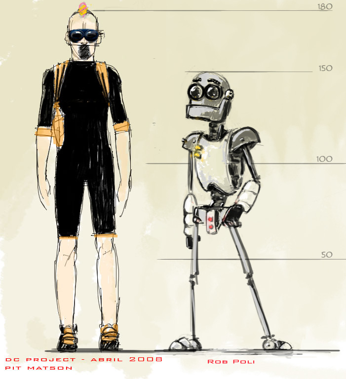 En 2006 (hace dos años) Drakky y yo teníamos una idea y 10 páginas de guión. Entonces hice un primer intento del peonaje principal: Pit Matson.