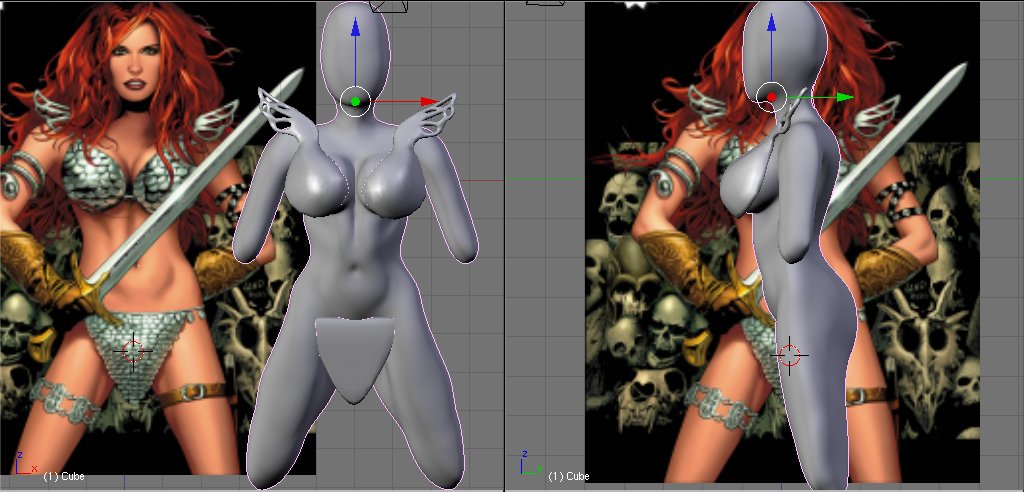 Bueno, al final he cambiado a un personaje de cómic para hacer algo ya más serio, estoy haciendo a Red Sonja, aunque tengo más control con poly2poly y me sale mucho más definido, para algo está el Sculpt, además de ser mucho más rápido puedes preocuparte por el detalle al final, lo primero es coger la proporción y la forma y al final ya metes detalle, está bien esto oyess, me está gustando lo de esculpir.
