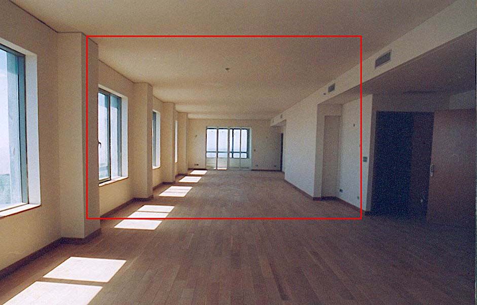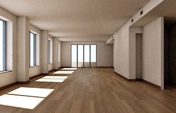 Tengo que lograr la imagen de esta primera fotografía lo más fotografía realísticamente posible. La imagen del recuadro en rojo es sobre la cual estoy trabajando. Este interior estará amoblado y equipado en los próximos días, pero por ahora está vacío y lo estoy aprovechando para lograr la mejor iluminación posible. En los próximos mensajes les voy a explicar lo que ya tengo hecho y los settings de Brazil. Les pido un favor ya que, esto es de suma urgencia. Cuando me hagan una crítica, les pido si me pueden dar una solución específica para lograr lo que me dicen. Les digo esto porque yo soy consciente de casi todas las deficiencias que tiene la escena, pero cómo todavía no tengo un manejo idóneo de lo qué significa cada setting mi única manera es la de aprender toqueteando hasta que de a poco vaya aprendiendo la teoría de la GI. La escena esta iluminada con una luz sola Brazil spot light, bueno, aquí vamos, desde ya les agradezco.