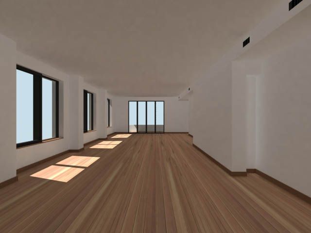 Mult: 2.4 color 100% blanca. Photon Maps: global: #photons: 20000 power: 4,0. Los materiales: (para mí entender los materiales son muy importantes al iluminar algo). Piso: Brazil utility (para tener control sobre la emisión de GI del piso). El único valor que cambié es el level dentro de la sección generate de los parámetros de GI y lo pasé a un 0,7 para que toda la escena no se vea tan teñida del color de la madera del suelo. El material que utilicé por arriba de este es un Brazil advanced sencillamente porque quería reflejos borrosos. (Glossy reflexiones). Utilicé un valor de glossiness de 1800 (Phong) con un sample rate de 6. Esto me fue muy caro en tiempo de render. Highlight shader: Blinn 100 normal. Utilicé el mapa del suelo en 3 oportunidades: para el color, el Bump (que ahora voy a cambiarlo por un mapa específico que he hecho) y para el Spec level, que también debería cambiar por un mapa propio. Los reflejos están dados por un mapa fallof que va de negro a gris semi claro con un tipo Fresnel. El resto de los materiales no tienen complicaciones. Un material standard gris para las paredes y techo (el coloreado está dado 100% por el sangrado de color de la madera del suelo y la influencia de la luz skylight sobre las paredes). Los zócalos son un standard con un Shader de madera discreto usado para romper un poco con la monotonía de color. Los vidrios son Brazil Glass (olvidé hacerlos visibles para el último render, el reflejo que dibujan aporta bastante a la imagen final). Y sobre el resto no hay mucho para comentar. El fondo está puesto en Adobe Photoshop, la escena la rendericé y guardé como (*.tga) con canal alpha para poder componerla luego. Fue lo único hecho en Adobe Photoshop. Hice pruebas utilizando la imagen como environment map, pero siempre me terminó afectando la iluminación por lo que decidí postproducir esta parte. ¿alguien sabe cómo hacer para poner de fondo algo, pero que no influya en la iluminación. Y eso es todo por ahora, espero no haberlos aburrido.