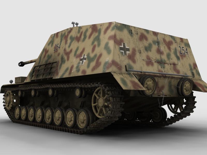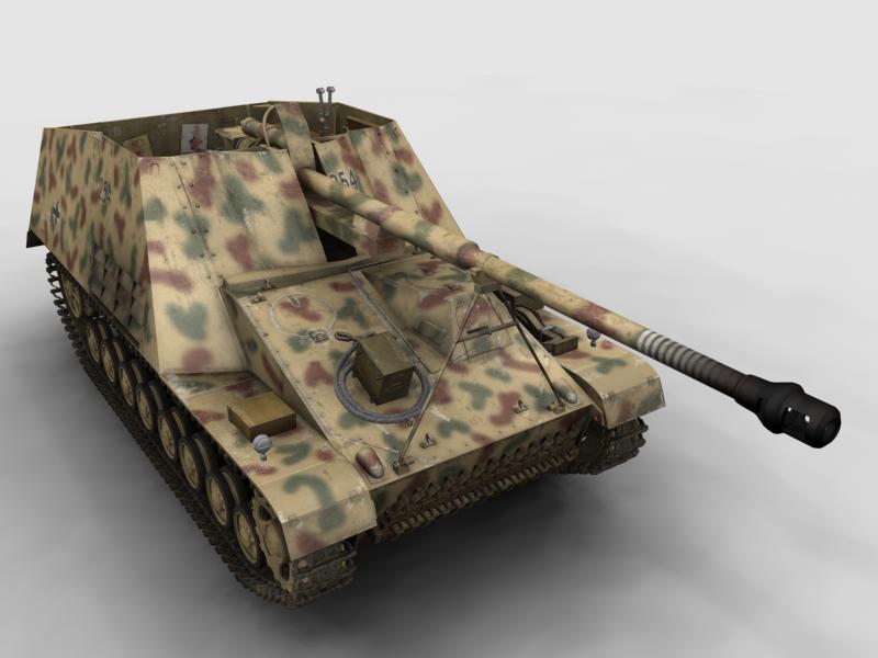 Los germanos querían colocar su mejor cañón anticarro en un vehículo con orugas, así que, tuvieron dos buenas ideas. Una hacer un carro para el cañón de dónde saló el Dicker Max, aunque a éste salió con un cañón al final más gordo de 105mm. Y del que sólo se hicieron 2 ejemplares, aunque fue muy bueno, pero no merecía la pena, porque el otro resulto sencillamente más bueno. Por la sencilla razón de ser más barato de hacer ya que se limitaron a colocar directamente el cañón terrestre en la plataforma del Hummel, es decir quitaron el pedazo pepino de 150 milímetros y colocaron el otro, cambiando muy levemente el frontis protector para adaptarlo al nuevo cañón.