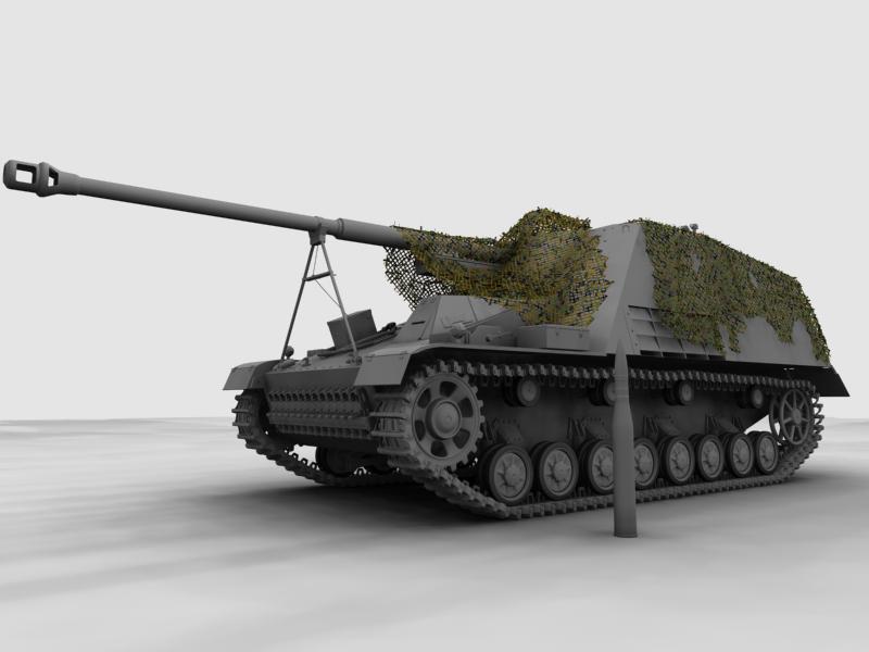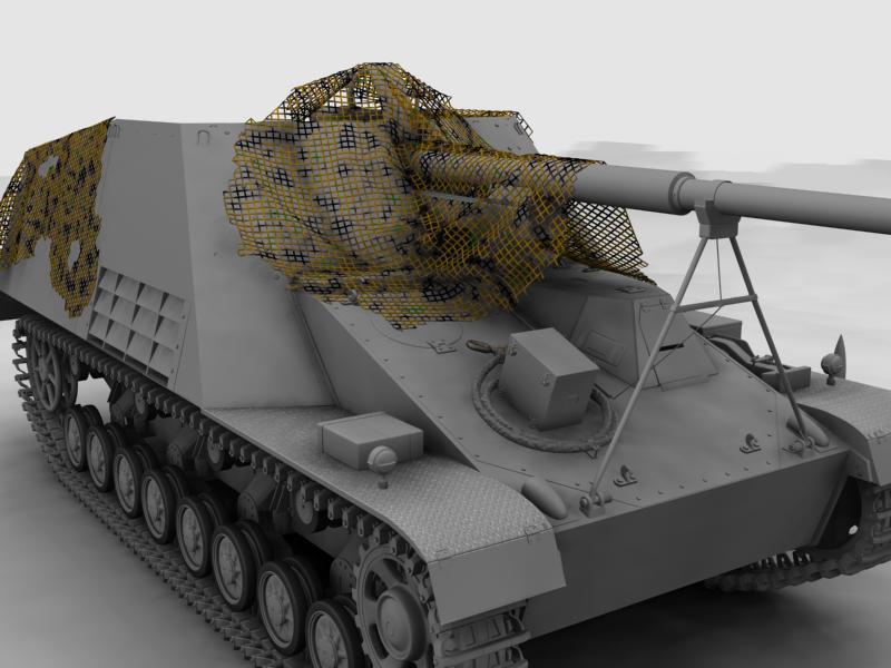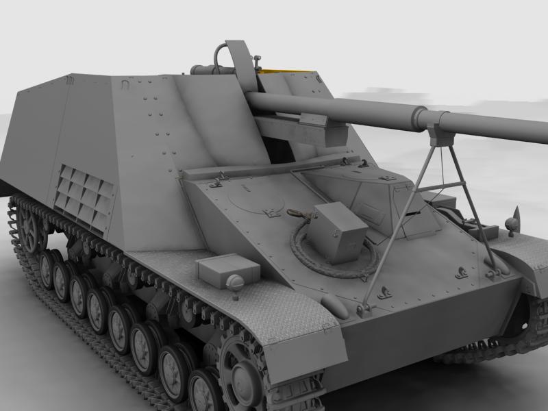 De éste fabricaron mogollón en dos versiones, el Hornisse primero y el Nashorn después, cambiando casi nada, sólo le apreciaríais la sujeción del tubo del cañón al chasis, que son distintas.