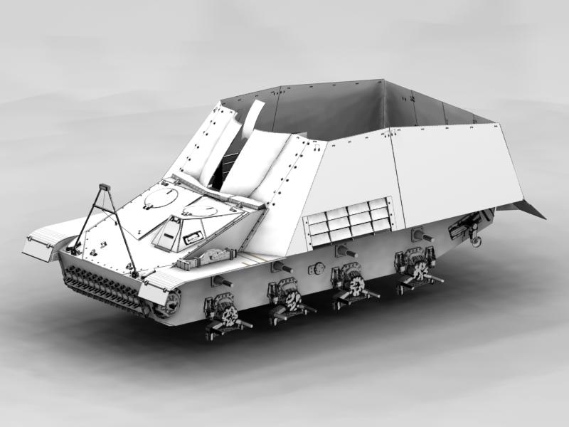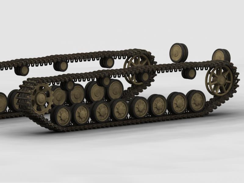 Y sí, en los frontales van unas hileras, que todavía no están hechas, tranquilo. Fíjate que me acabo de dar cuenta de que no les había modelado los ejes de las ruedas tensoras. Me he dado cuenta al subir uno de los últimos renders, las tensoras se ven flotando. Faltan detalles, pero cuando me ponga a texturizar me toca esta vez hacer 5 vehículos.