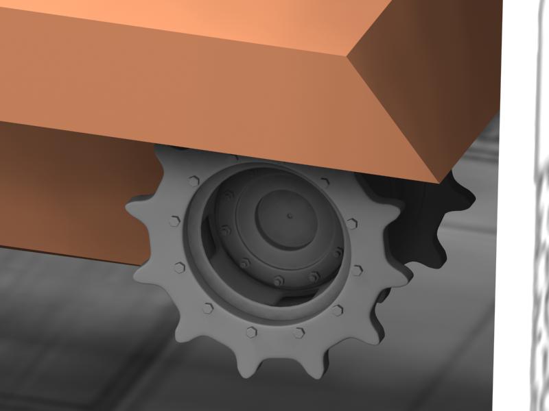 Es una corona de 12 piños, pero de doble triángulo, estilo americano que viene de la 2ª guerra, el Sherman ya tenía esa forma de flor que se le llama, un diente de doble triángulo haciendo el hueco del eslabón. Sólo usan ellos, los demás son más simples, un diente normal de engranaje chato.