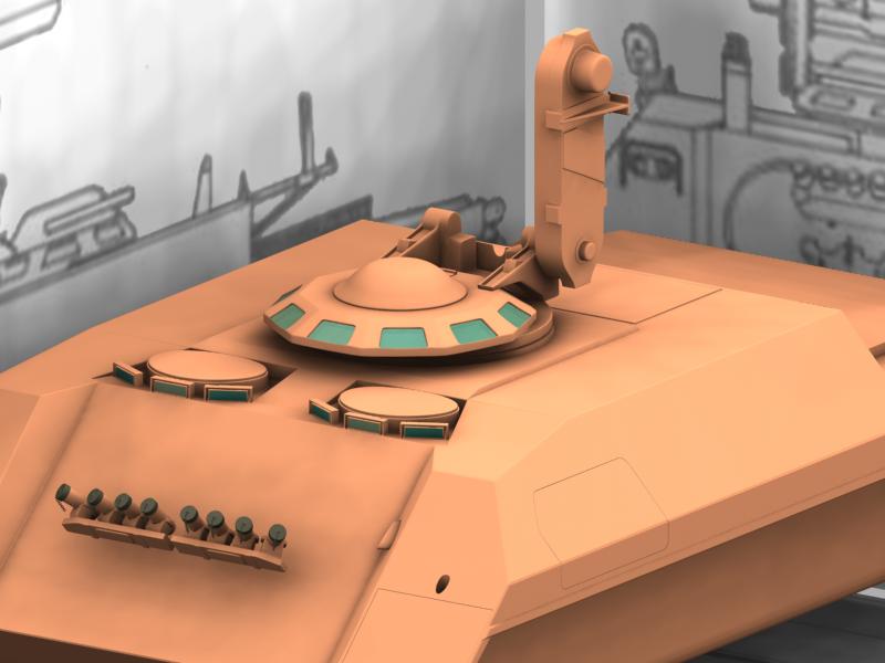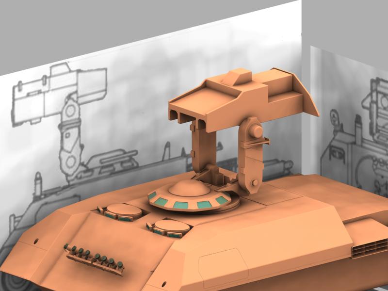 Bueno pues eso, acabo de ¿riggear? La torreta para que se pueda mover y me ha salido. Ahora gira como las de verdad siguiendo el movimiento que debe de tener la de verdad, aunque para que fuese de verdad deberían de salir los pistones, pero no se lo digáis a nadie, ahora que nadie nos lee nadie se dará cuenta.