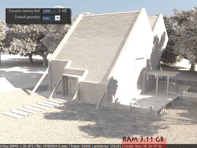 Default geometry - Internally Vray maintains four Ray casting engines. All of them are built around the idea of a BSP tre, but have diferent uses. The engines can be grouped into raycasters for non-Motion Blurred and for Motion Blurred geometry, as well as for static and dynamic geometry. This parameter determines the type of geometry for standard 3ds Max Mesh objects. Note that some objects (displacement-mapped objects,