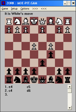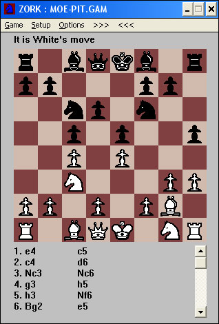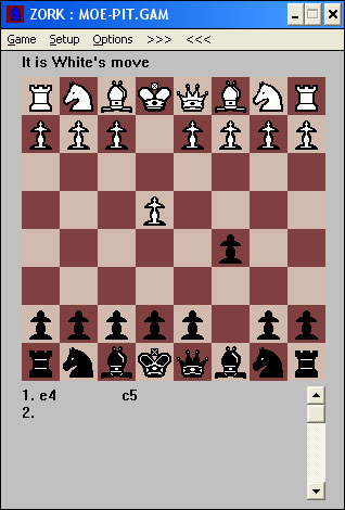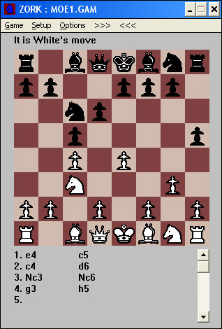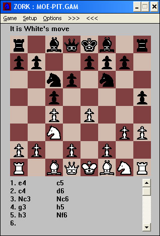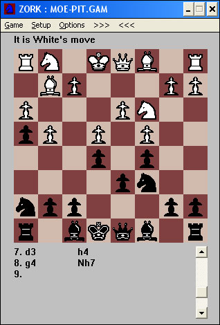 Ya ves, el zork, que piensa en inglés. Bueno en realidad no piensa, además mola, porque tiene bugs, como, por ejemplo, que un peón puede comer al paso cuando está a punto de coronar.