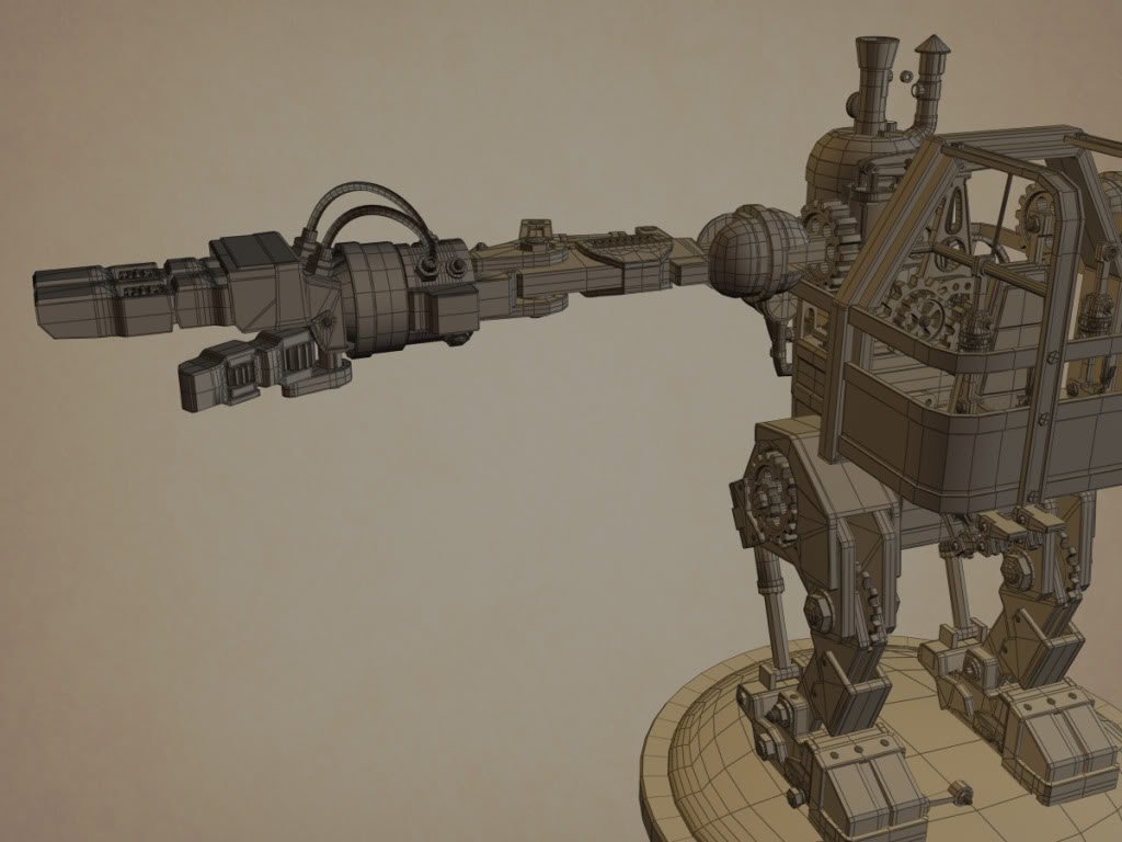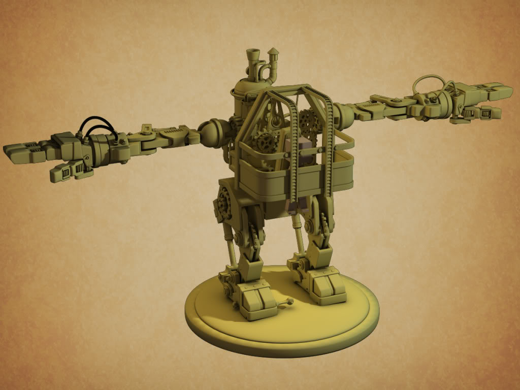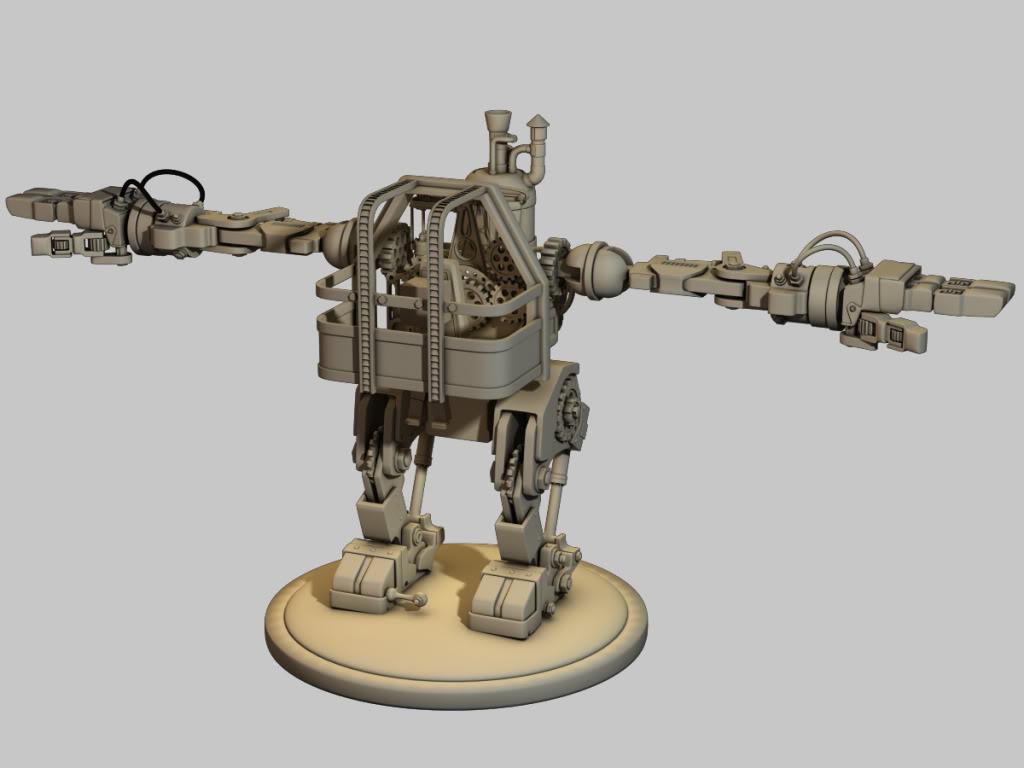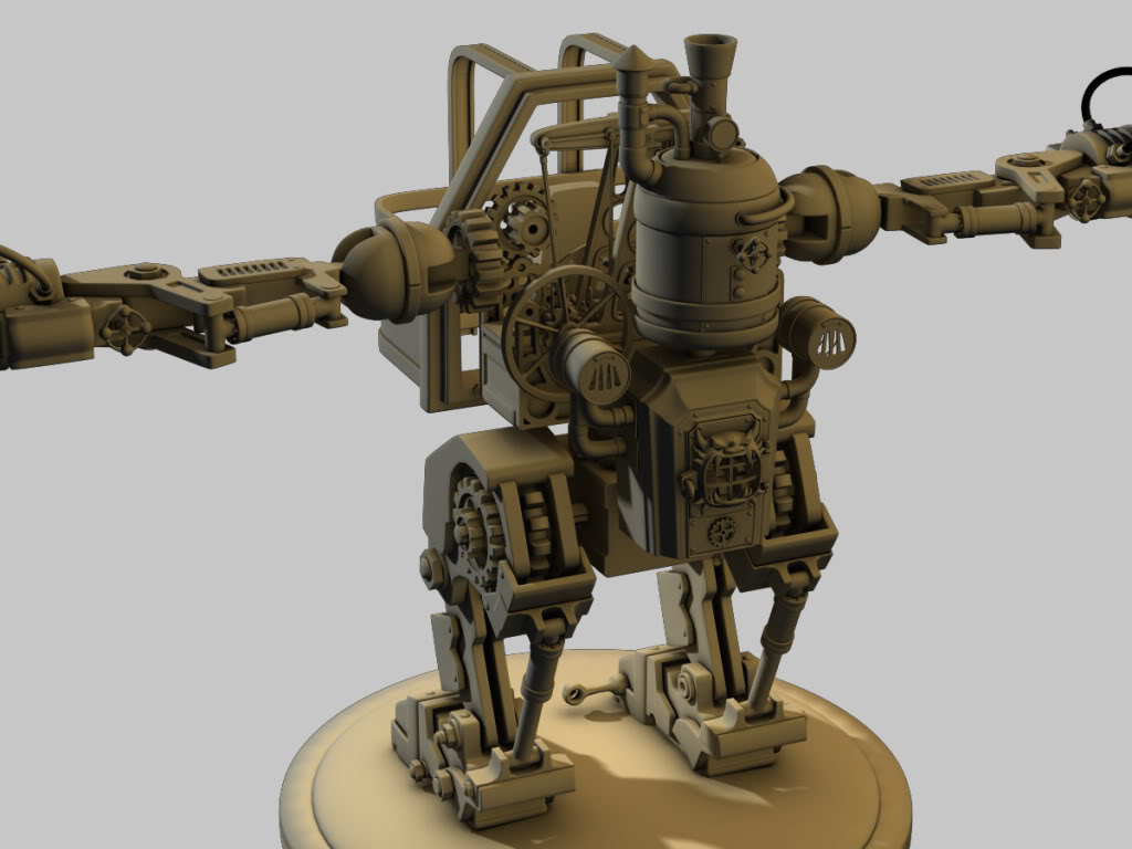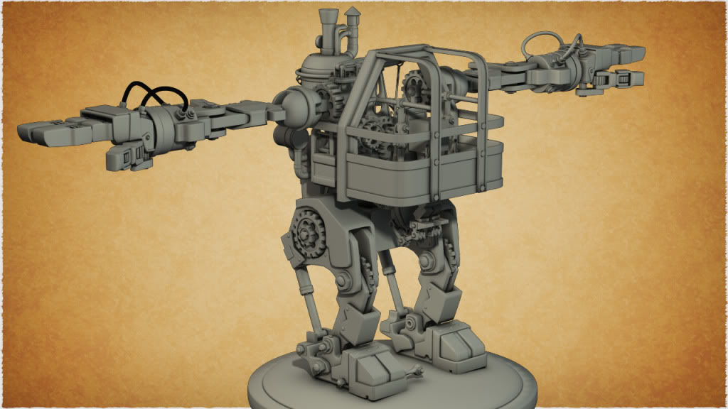 Buenas. Lo primero disculparme por el tiempo que hace que no publico nada, pero la verdad he estado muy liado. Me he metido a saco con un nuevo proyecto, en el que pretendo modelar / riggear / animar un mecha Steam con tripulante.