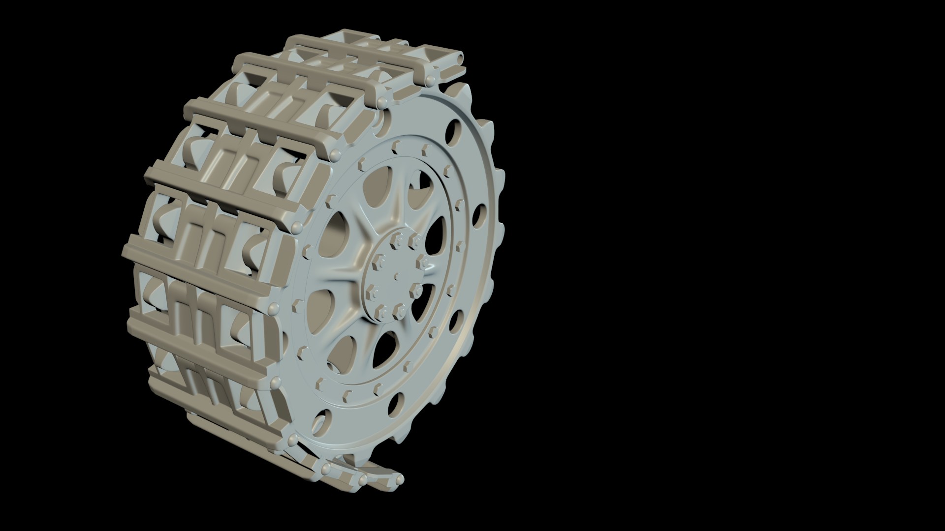 Ya solo le faltan los dientes y que te encajen en la oruga. Es mejor hacer primero la motriz y después la oruga y no al revés ;-) por si luego no te encajan los eslabones en los huecos, más que nada. Ánimo y suerte.