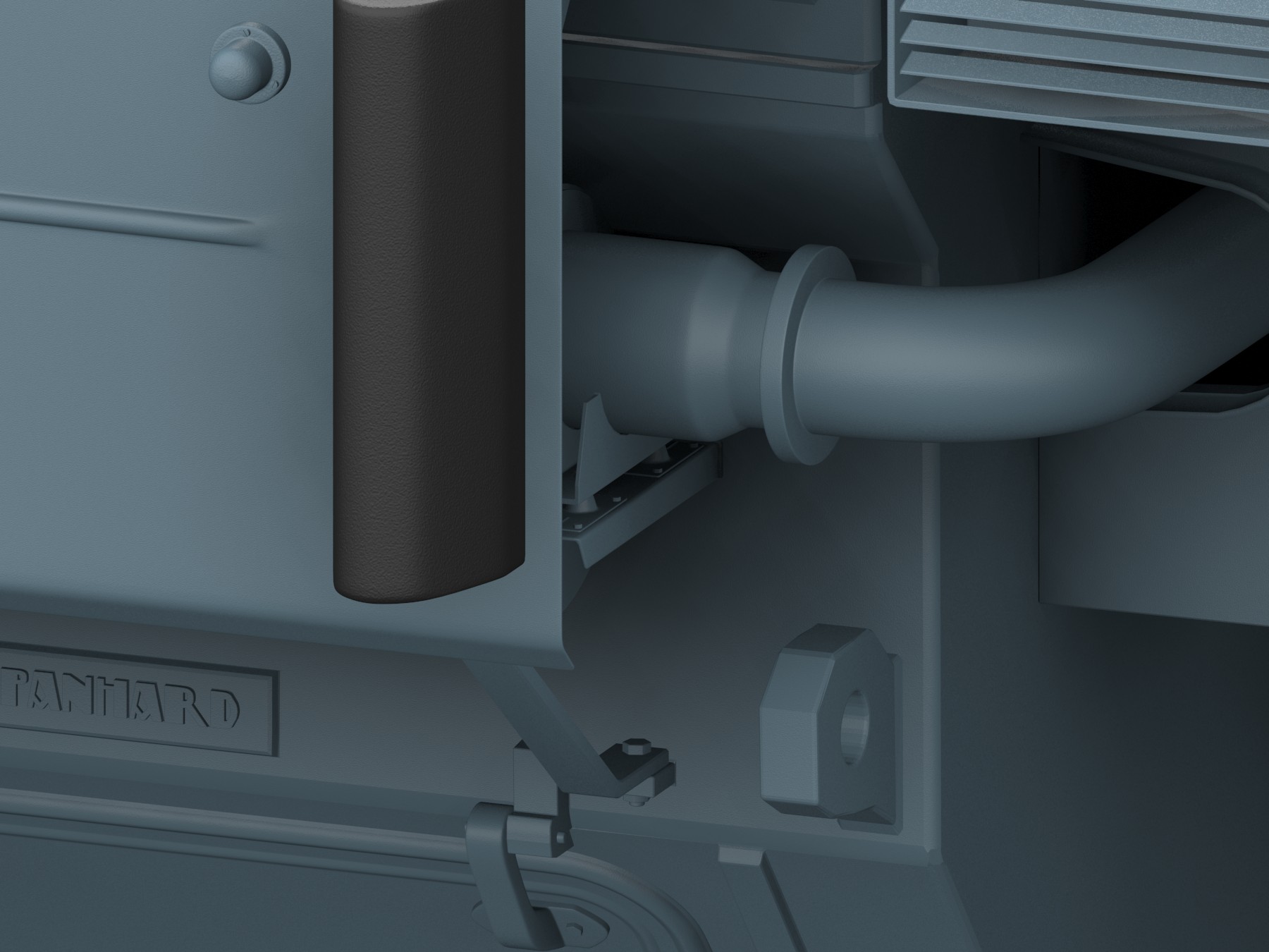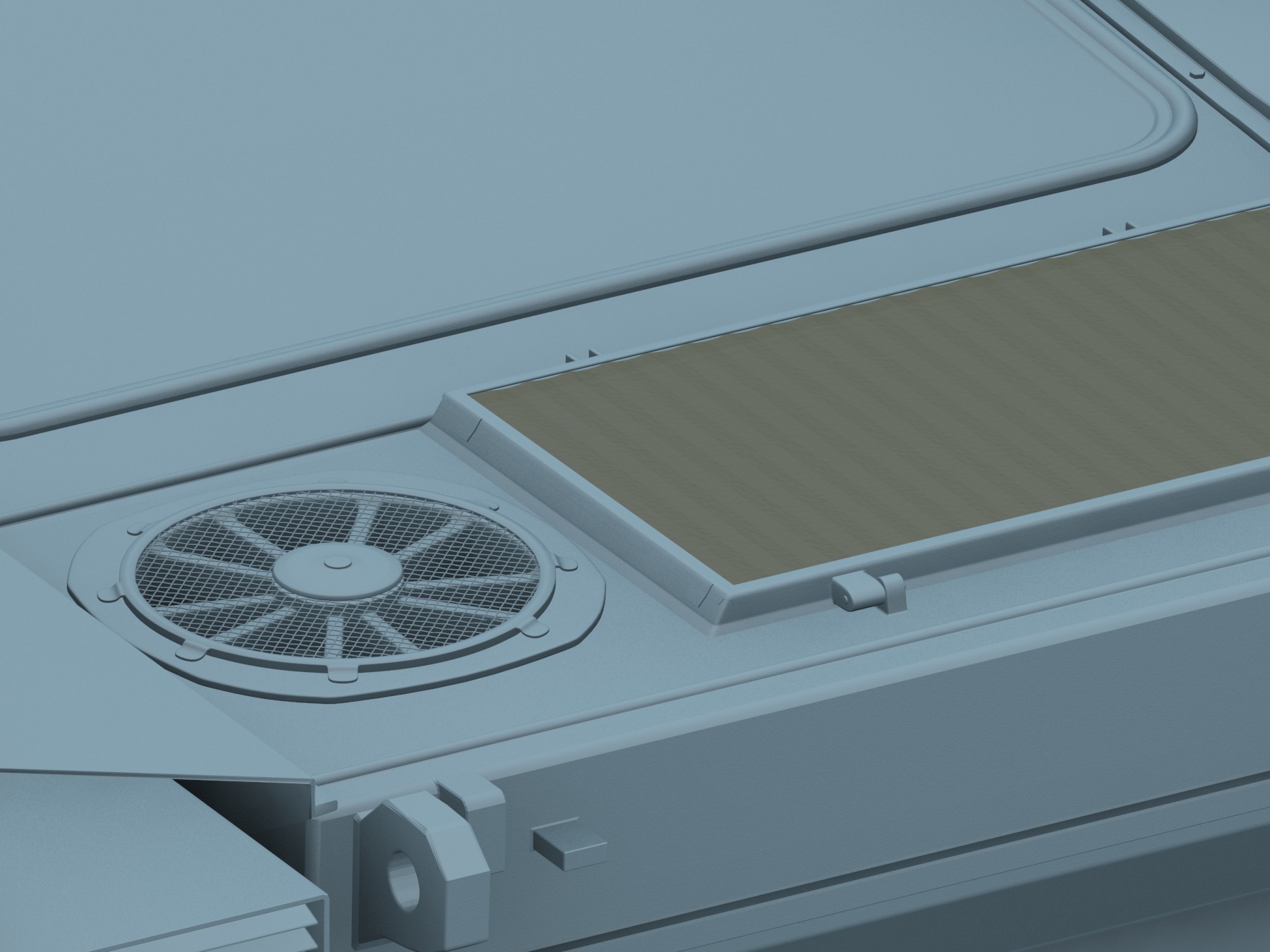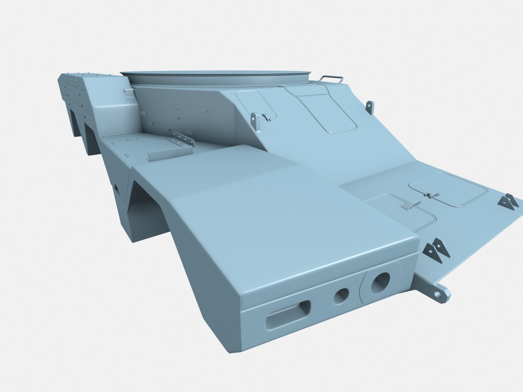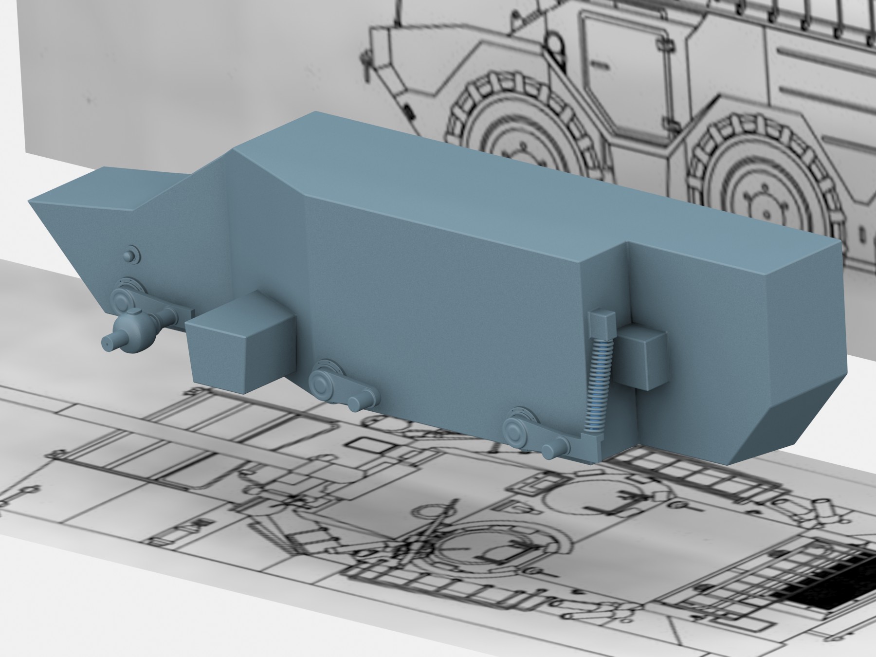 Más cosas en el glacis. Ahora estoy modelando la parte derecha, donde no hay puerta. Sólo un cajón y los enganches de las herramientas. Os dejo un render del glacis como esta hasta ahora. Faltan los enchanches de esas trapas y los periscopios nada más y pasaremos a la torreta.