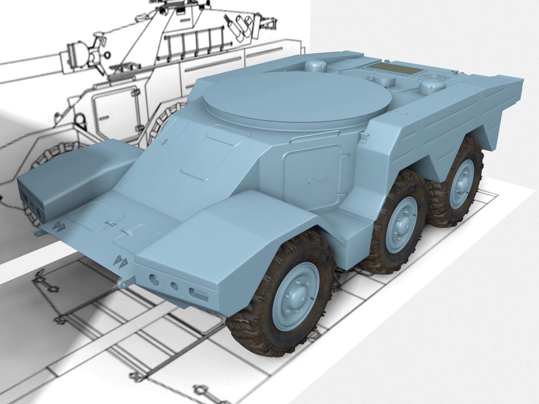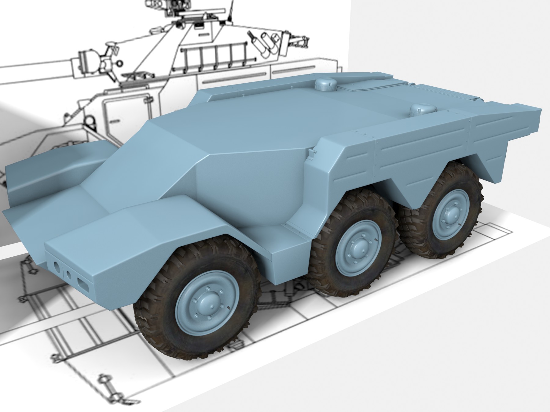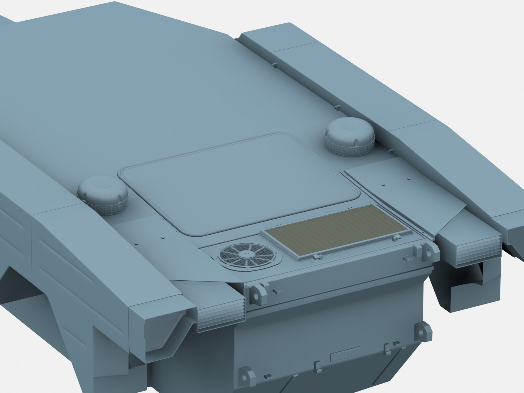 Por la trasera, empezando. En el hueco de la caja, irán las luces. Debajo de las rejas va una caja de la que sale el tubo de escape del motor. Antes iban unas turbinas con hélices para ir por agua, pero en los gabachos se las han quitado y han colocado unas cajas. Ni idea de lo que llevan. Particularmente me molaba con las turbinas, pero como hay muchas versiones, me decido por la francesa, pero con ruedas nuevas. Las que llevan son de cuando los primeros BMR españoles, así que, supongo que, se las habrán cambiado también, ya que en versiones de exportación (más nuevas) llevan las que he hecho.