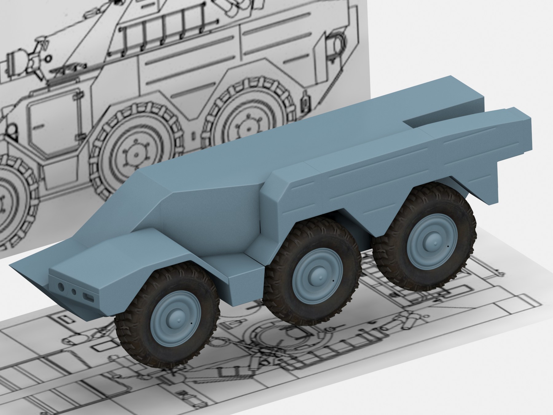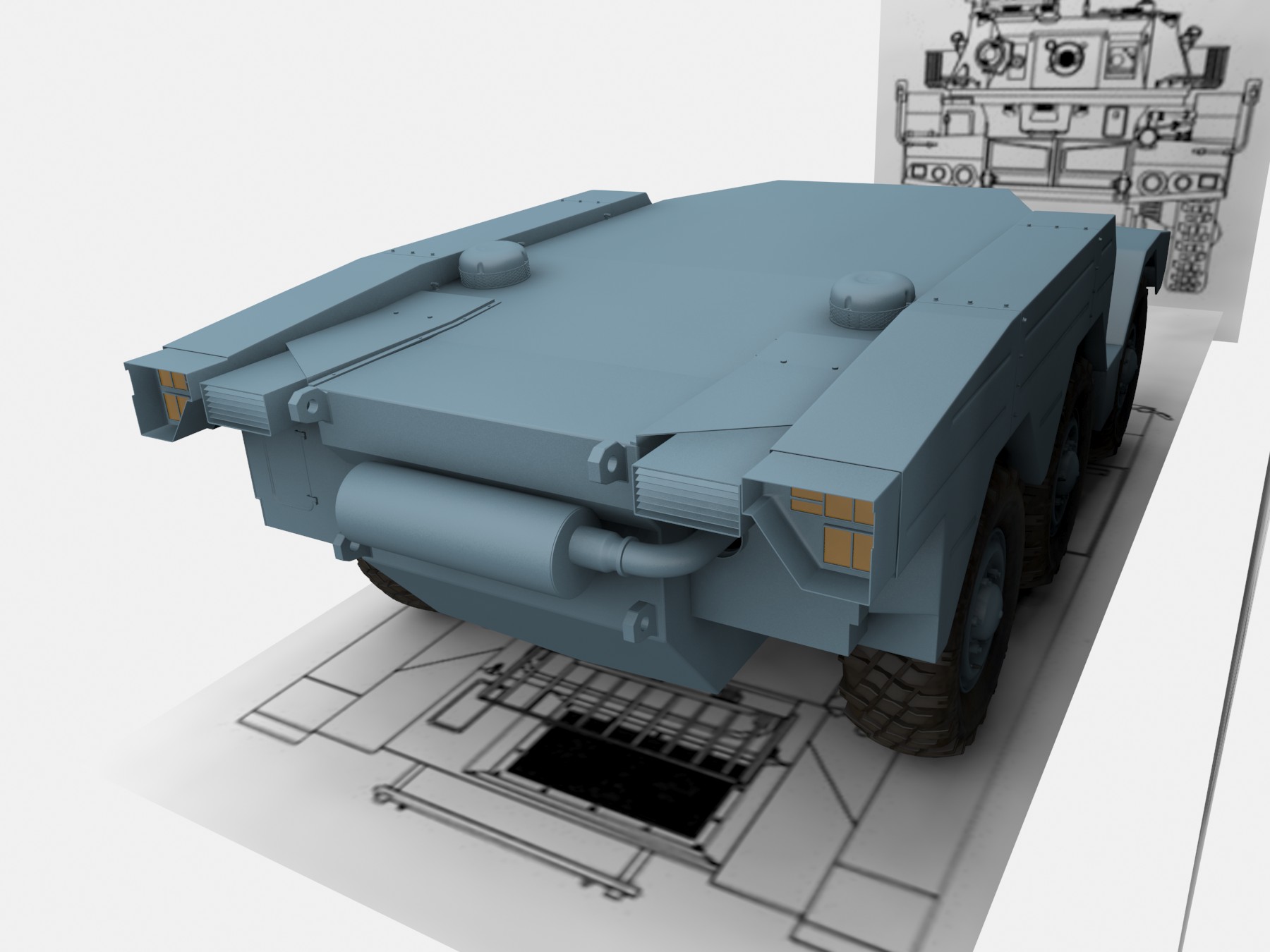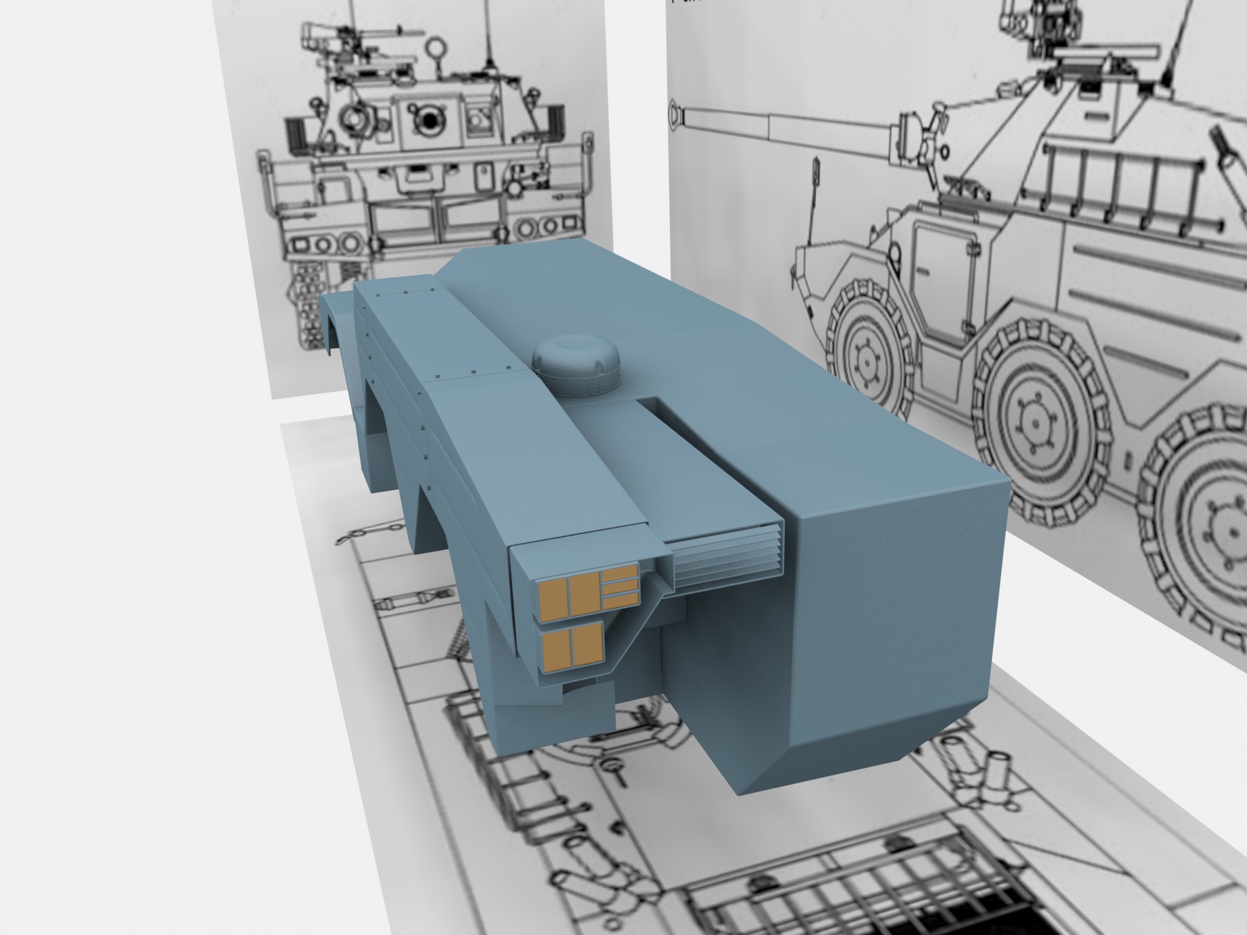 Bueno chavalotes, aquí s equeda la barcaza acabada ya en cuanto a modelado. Faltan texturizar las luces traseras y añadir algún catadrióptico en los guardabarros traseros. Así que ahora mismo me pongo a bocetar la torreta.