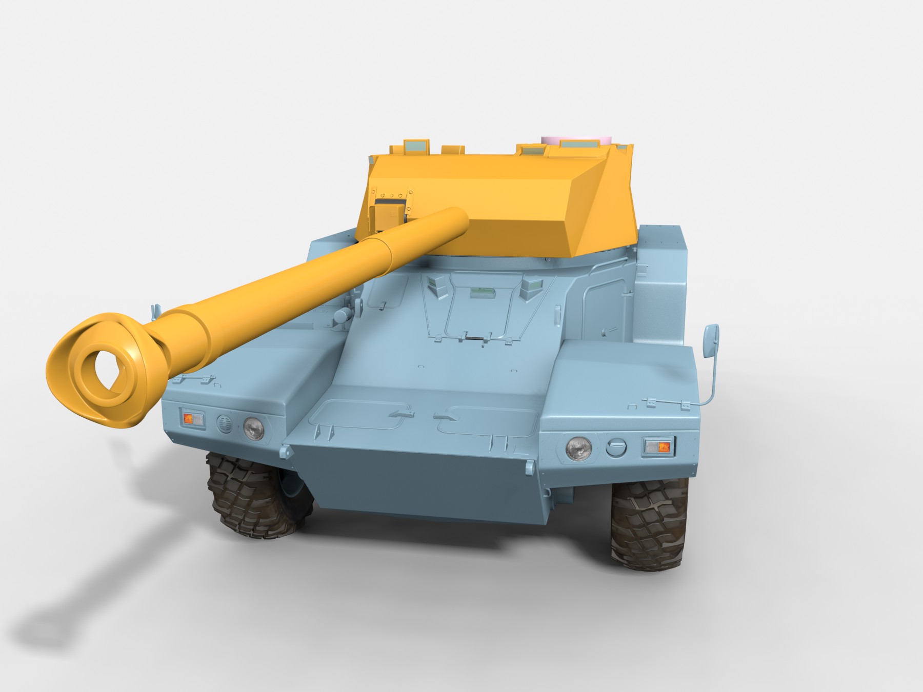 No se ve, en el siguiente render que tire le daré la vuelta boca abajo o elevaré el cañón, para que veáis que está con 22 agujeros por debajo de la caña en sentido longitudinal. No me preguntéis para que son, porque es la primera vez que elo veo en un cañón. Me supongo que, es por aligerar y regrigerar, pero quien sabe. Los de giat sabrán, pero no se lo voy a preguntar.