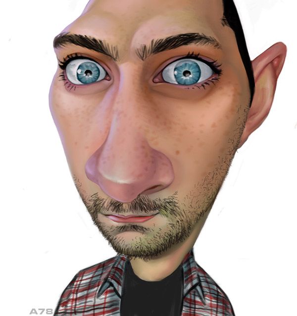 Vaya vaya A78, mis más sinceras felicitaciones, muy buenas caricaturas. Si me permites un comentario, la de Combat Mantra, aunque se ajusta a la fotografía, no lo hace a la realidad, combat tiene las proporciones faciales bastante armonicas, (y no es un piropo cm), evidentemente en la caricatura hay que tirar de algo, pero en este caso es más bien de la deformación de la perspectiva de la fotografía que de la realidad (de hecho, casi se parece más la caricatura a mi Jeta que a la suya), vamos es mi opinión.
