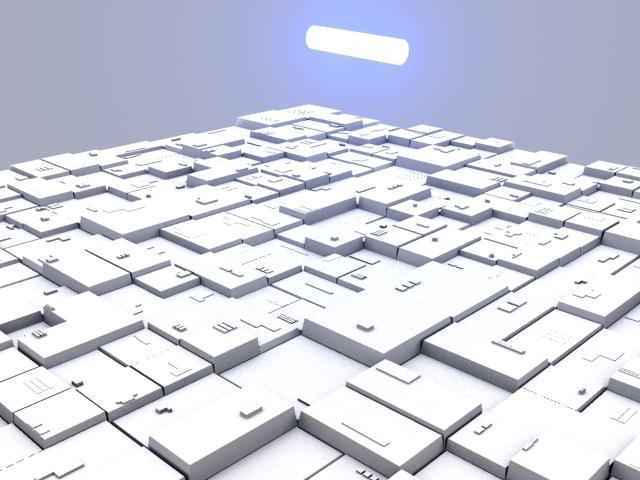 Final Gathering, sin GI, y el modificador gratuito Greeble para la subdivisión de superficies.