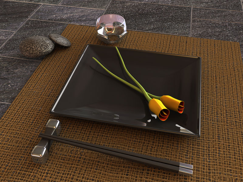 Bueno voy a aportar mi granito de arena, este render está hecho con Ambient Occlusion,últimamente es lo que estoy gastando, adjunto imagen y escena, el render tardo en AMD Dual 1200 1:40 segundos.