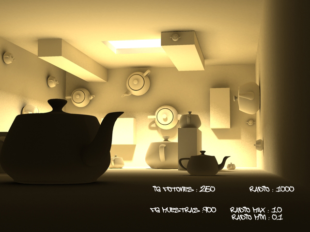 Ya he probado lo que decías. Efectivamente los tiempos bajan mucho y se eliminan casi todos los artefactos, pero la precisión deja mucho que desear (ya es mucho pedir, supongo). La escena esta es especialmente complicada, porque la única iluminación que entra es por rebote, pero me da que me falta máquina.