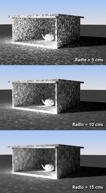 Ahora el plato fuerte: En cualquier escena probad esto en el Final Gathering. Max. Radius= 10 metros. Min. Radius= 5 metros.