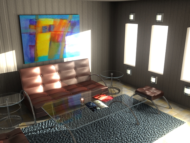 Saludos Mental rayados, si os parece bien podríamos ir poniendo aquí renders de este fantástico motor, llegar al fondo y ver realmente que tiempos se le pueden sacar, como tratar los materiales, luces etc. En otro hilo ya me han terminado de dar el empujón para abrir este mensaje, he cogido una escena del hilo de Yafray y aquí va, es lo primero que he podido sacarle, yendo directamente a bajar tiempos.