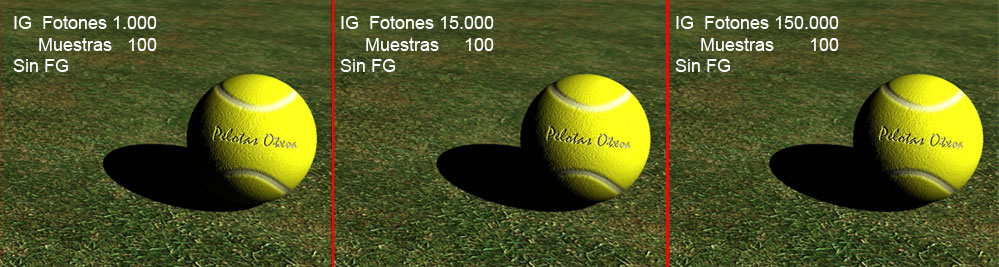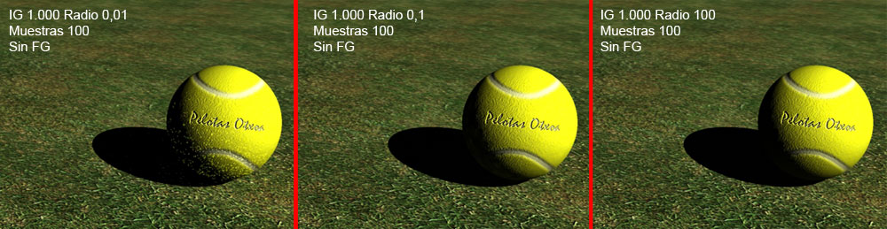 Hola dumdum, gracias por tu respuesta. En esas imágenes no he usado global ilumination, solo he usado Final Gathering, ya que los resultados, para mí, son mejores solo con Final Gathering que con los dos juntos. En cuanto a los radios, he observado, que en cada escena es un mundo, ya que la primera y la última imagen, tienen unos radios más altos, y por tanto más rápido el render, y la de en medio, tiene unos radios muy pequeños, y un tiempo de render muy alto, pero era la única forma de que saliese uniforme el render, sobre todo la esquina del fondo. Un saludo y gracias.